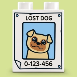 Geschichten erstellen - Das Set enthält eine Polizistenfigur, einen verlorenen Hund und ein Poster mit der Suchmeldung. Mit diesen Elementen können Kinder großartige Abenteuererzählungen erstellen.