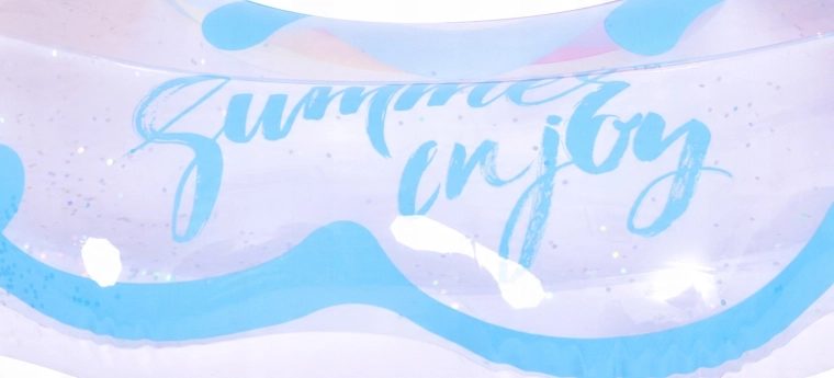 Transparentes PVC mit farbigen Streifen und glänzenden Pailletten sorgt dafür, dass du auf dem Wasser nicht zu übersehen bist – Spaß und Stil in einem.