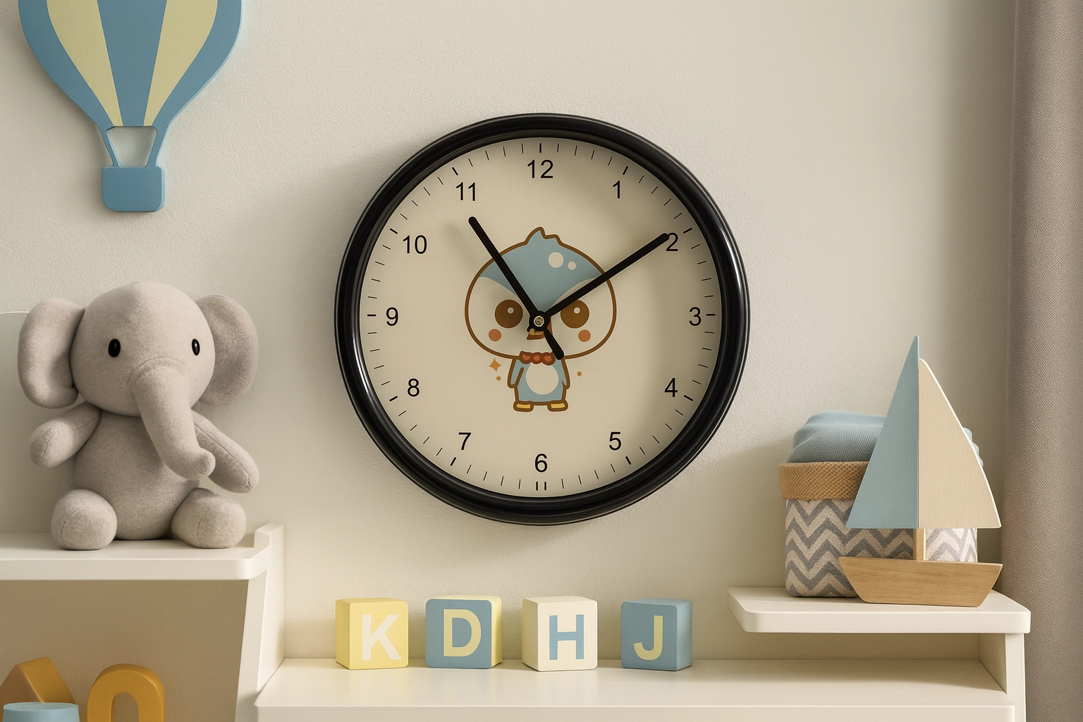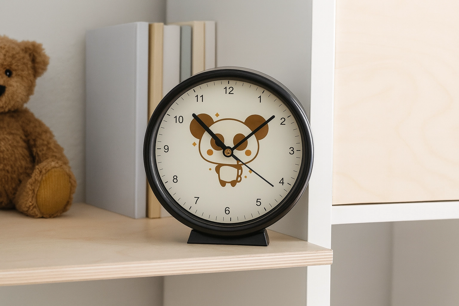 Verspieltes Design mit Bär, Katze oder Panda bringt Freude ins Kinderzimmer und motiviert beim Zeitlernen.