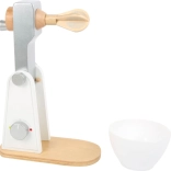 Die Holz-Küchenmaschine small foot begeistert kleine Köche mit realistischen Funktionen und hochwertiger Verarbeitung. Drehbare Rührbesen mischen den Teig in der Kunststoffschüssel, und der klappbare Mixkopf ermöglicht bequemes Einfüllen und Entnehmen der Zutaten. Ein robuster Standfuß sorgt dafür, dass die Maschine beim Spielen fest steht.