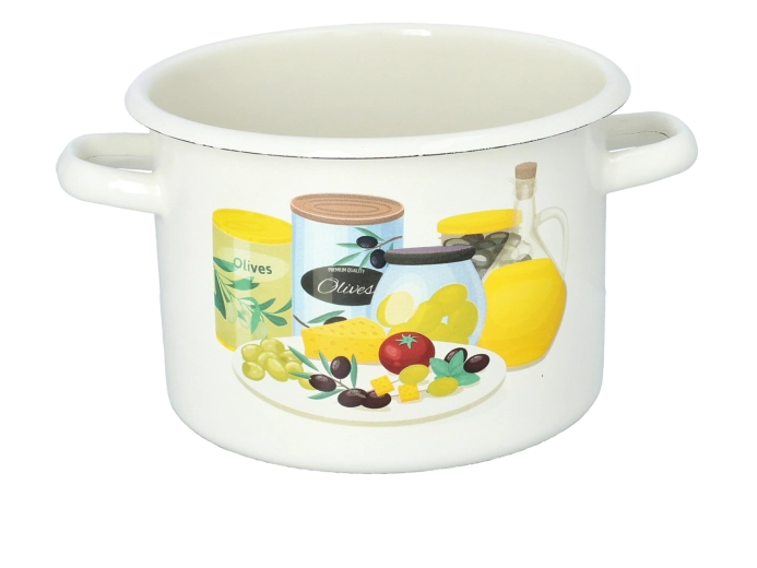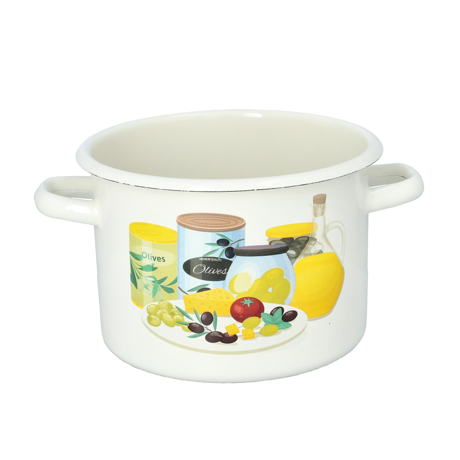 Setzen Sie auf zeitloses Design und Praktikabilität. Dieser cremefarbene Emaille-Topf mit dezentem Olivenmotiv eignet sich dank seines 3-l-Fassungsvermögens hervorragend für Suppen, Saucen und Beilagen. Die emaillierte Oberfläche aus Kohlenstoffstahl sorgt für schnelles und gleichmäßiges Aufheizen und hilft so, Zeit und Energie zu sparen.
