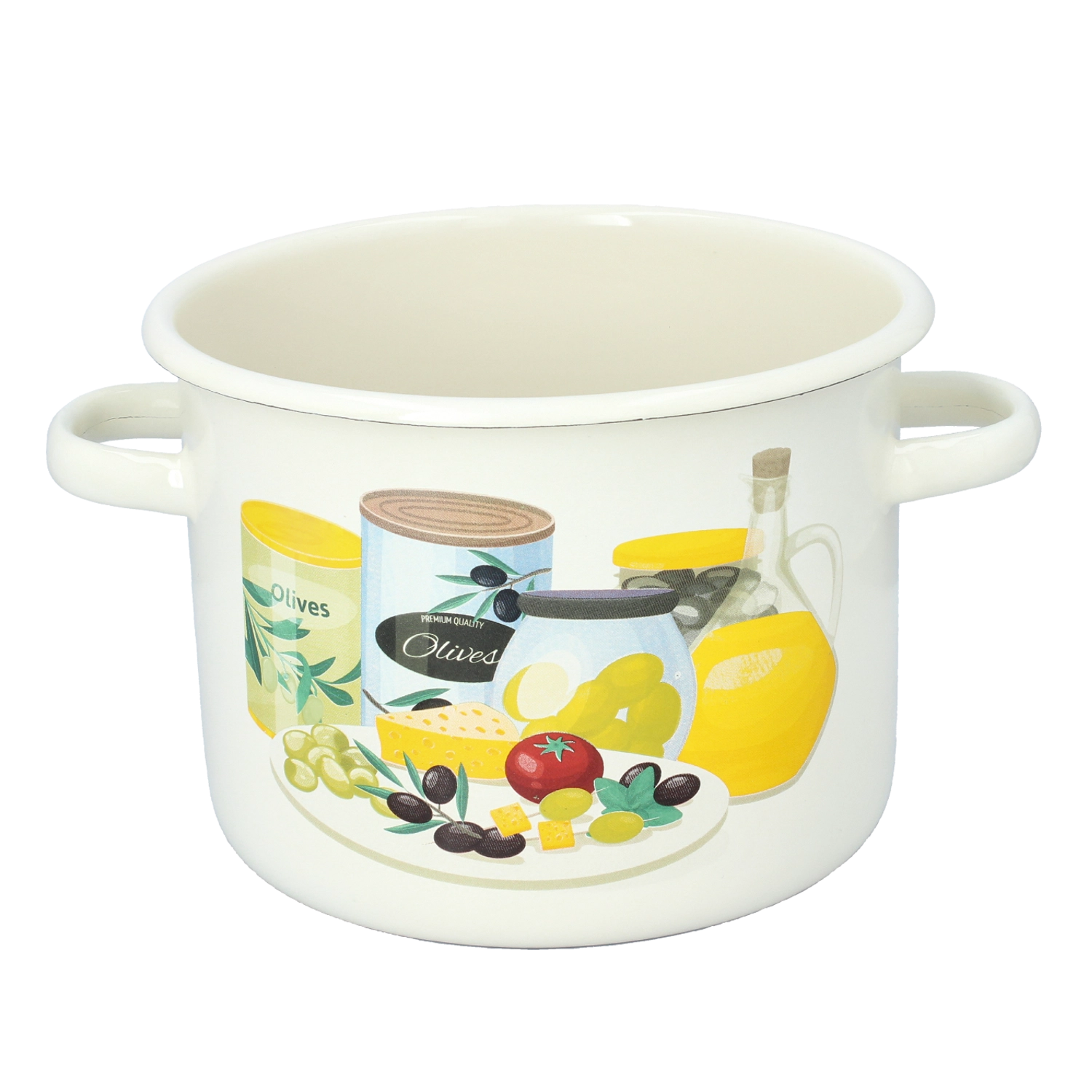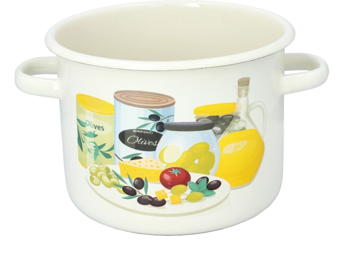Entdecken Sie einen zuverlässigen Emaille-Topf, der klassisches Design mit praktischen Eigenschaften für den Alltag verbindet. Die cremefarbene Ausführung mit Olivenmotiv fügt sich hervorragend in moderne wie auch ländliche Küchen ein und bietet ausreichend Platz für Suppen, Saucen und Schmorgerichte.
