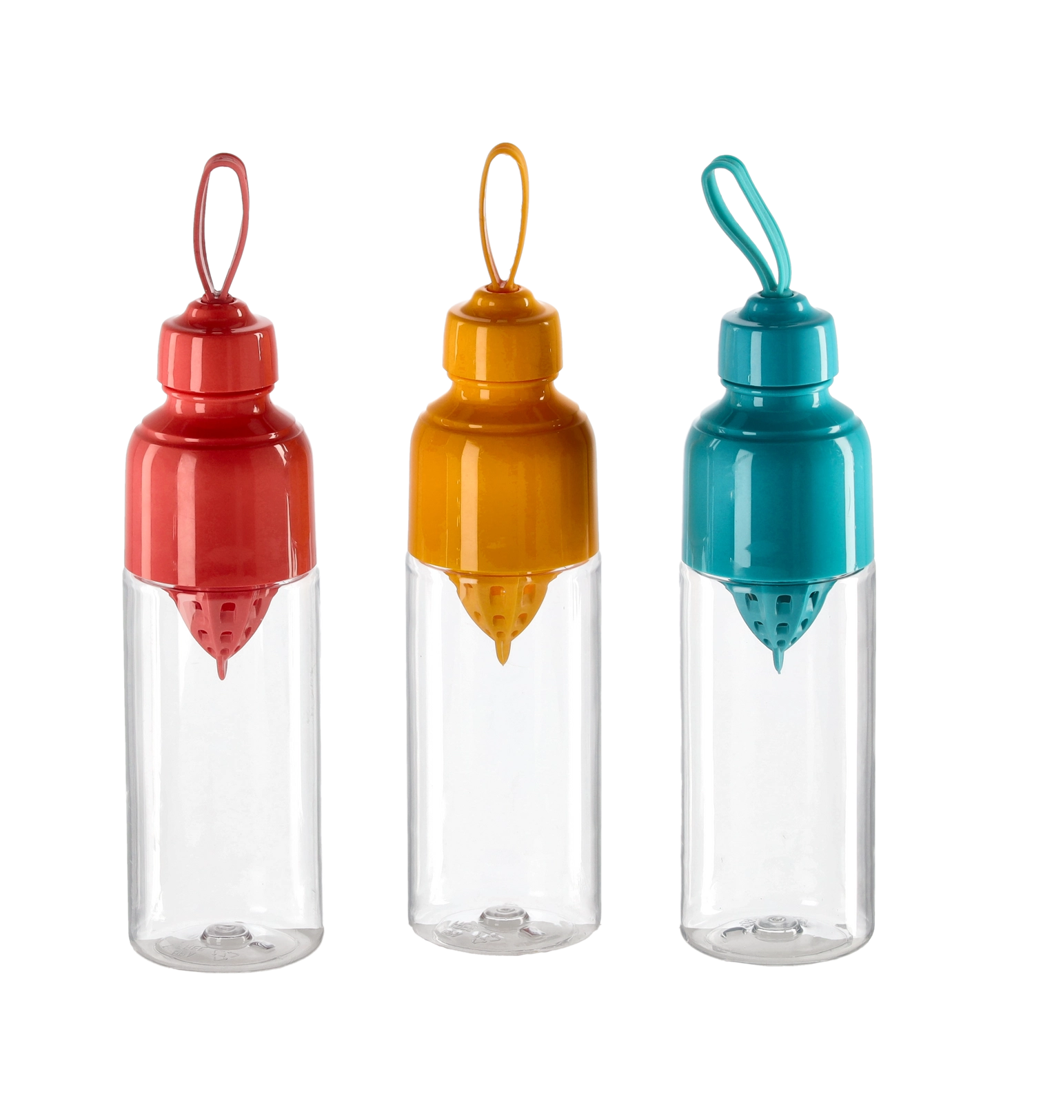 Frischen Sie Ihre Trinkroutine mit frisch gepresstem Zitrussaft direkt in der Flasche auf. Der integrierte Zitruspresser ermöglicht schnelles Entsaften und das direkte Aromatisieren von Wasser mit vitaminreichem Saft. Der transparente Flaschenkörper erleichtert die Füllstandskontrolle, und dank der kompakten Maße passt sie in Tasche und Rucksack.