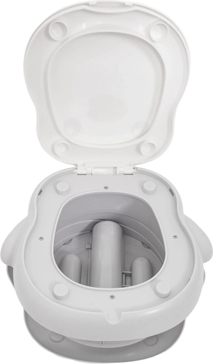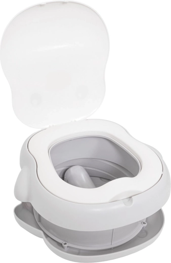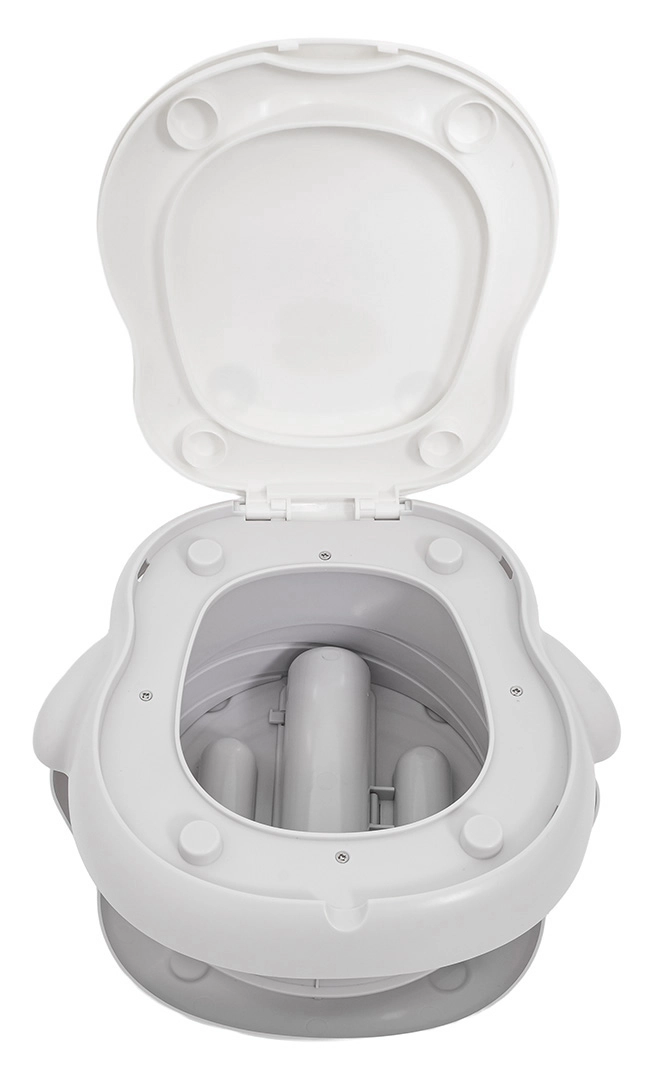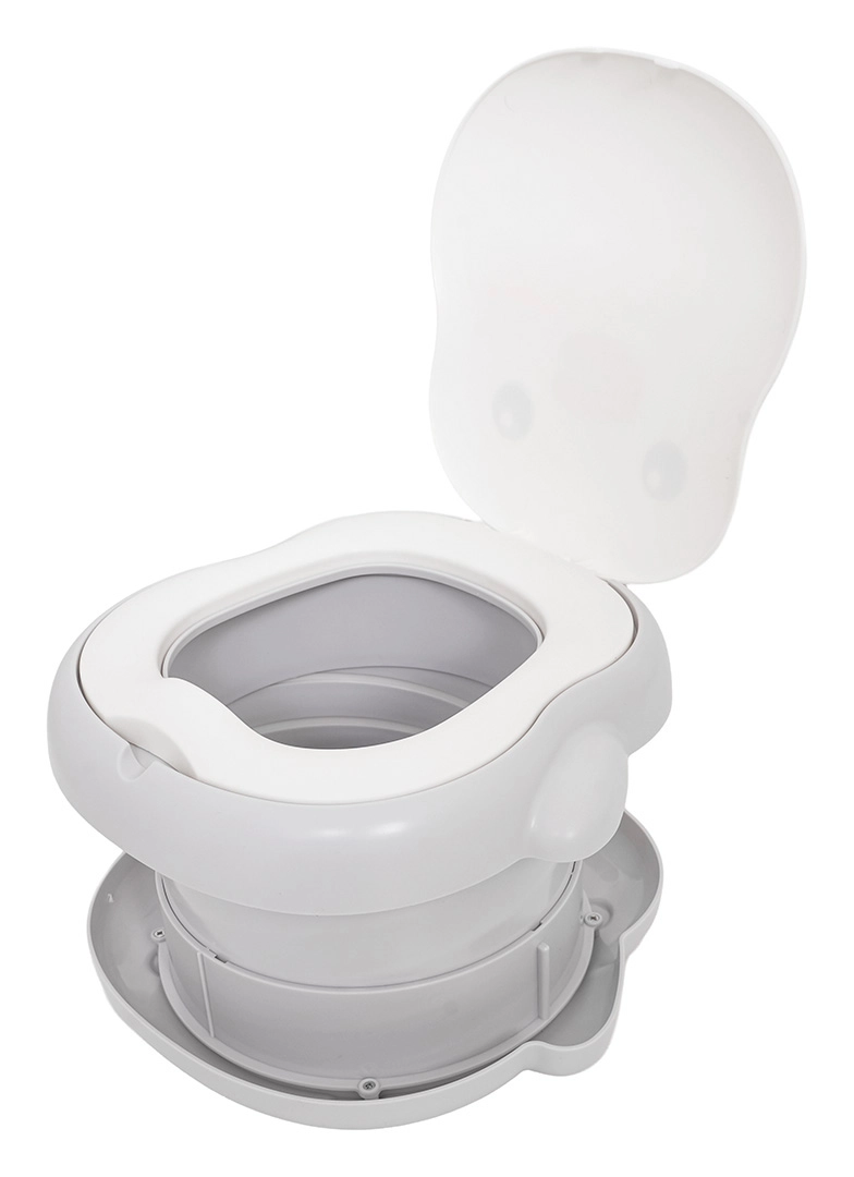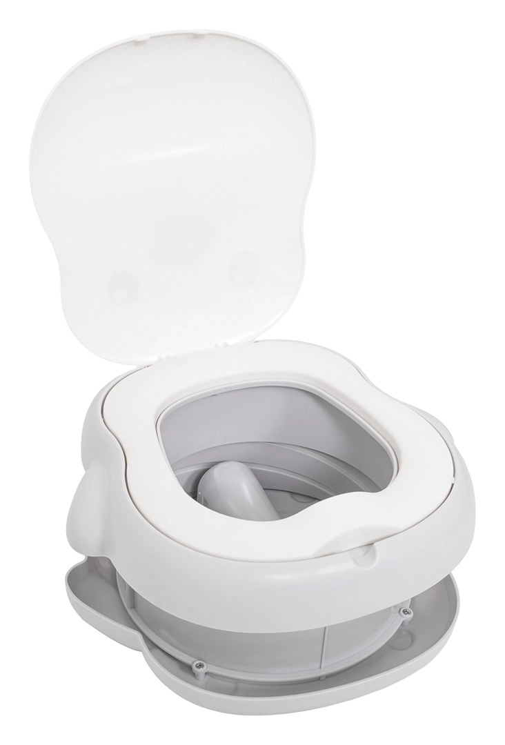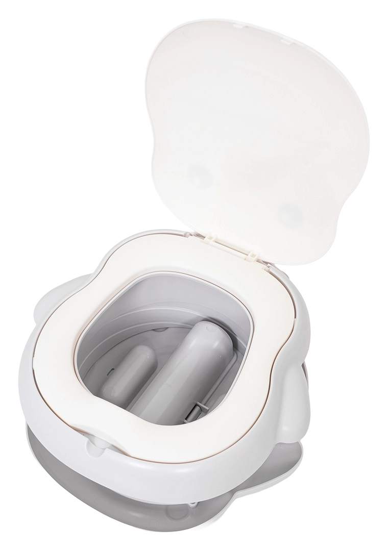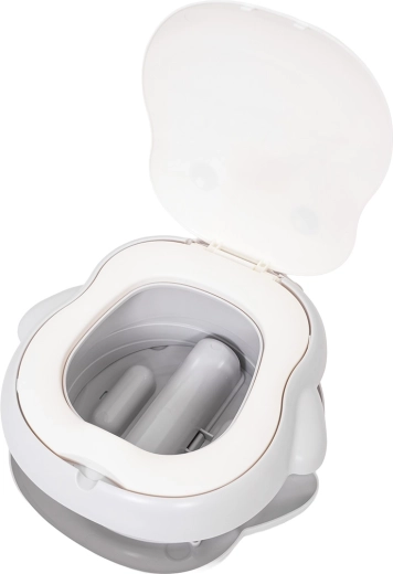 Das Töpfchen bietet eine zweistufige Höhenverstellung, eine stabile rutschfeste Basis und einen integrierten Beutelspender für eine saubere und einfache Lösung ohne Toilettensuche. Im Lieferumfang sind zudem eine Beutelrolle, eine Transporttasche und selbstklebende Anti-Rutsch-Pads für zusätzliche Stabilität enthalten.