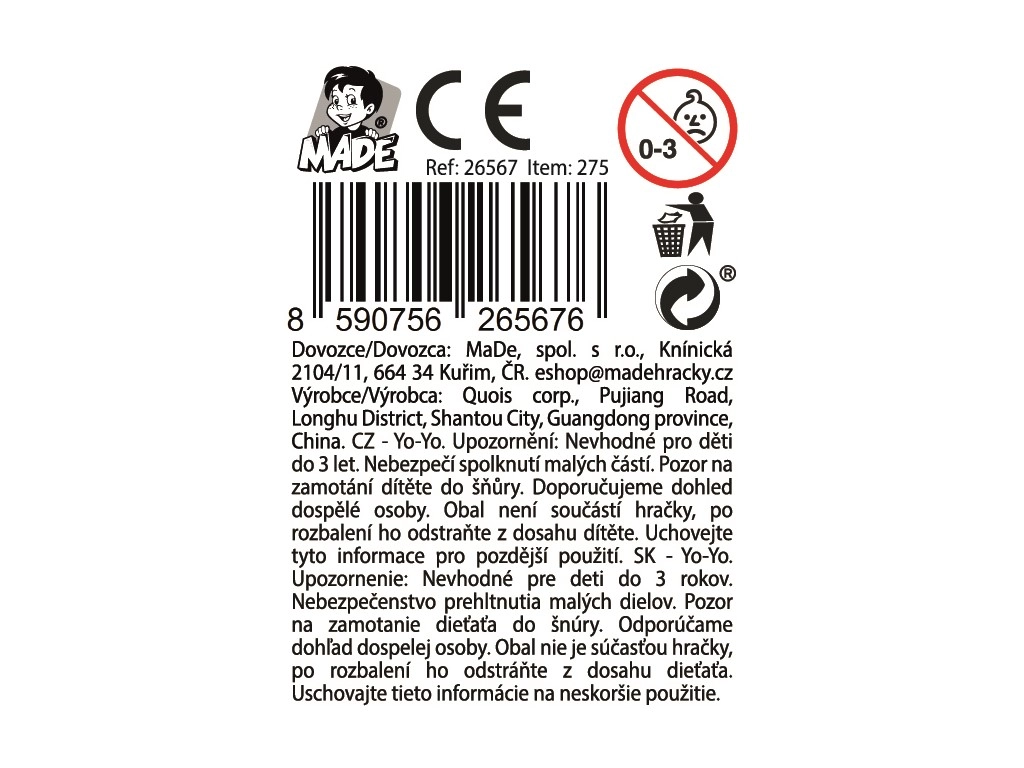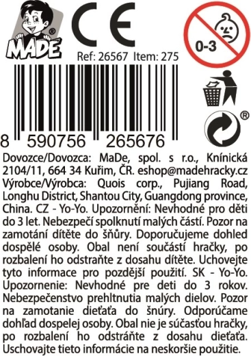 Dank des leichten und robusten Kunststoffs liegt das Yo-Yo angenehm in der Hand und hält dem täglichen Spielen stand. Die farbenfrohe Ausführung motiviert zum Trainieren von Koordination und Feinmotorik, während gemeinsames Spiel Wettbewerbsgeist und Teamgeist fördert.