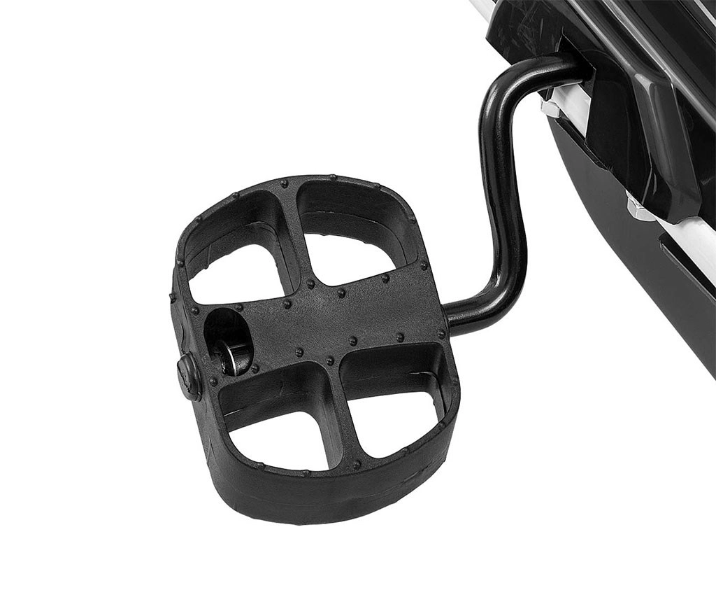 Der Kettenantrieb mit Freilauffunktion und die auf beide Hinterräder wirkende Handbremse ermöglichen sicheres Abbremsen und Geschwindigkeitskontrolle.
