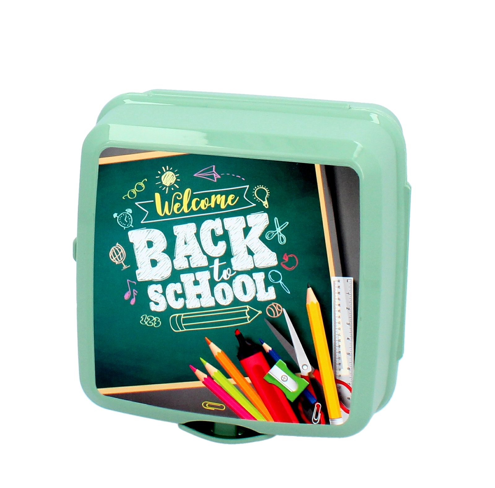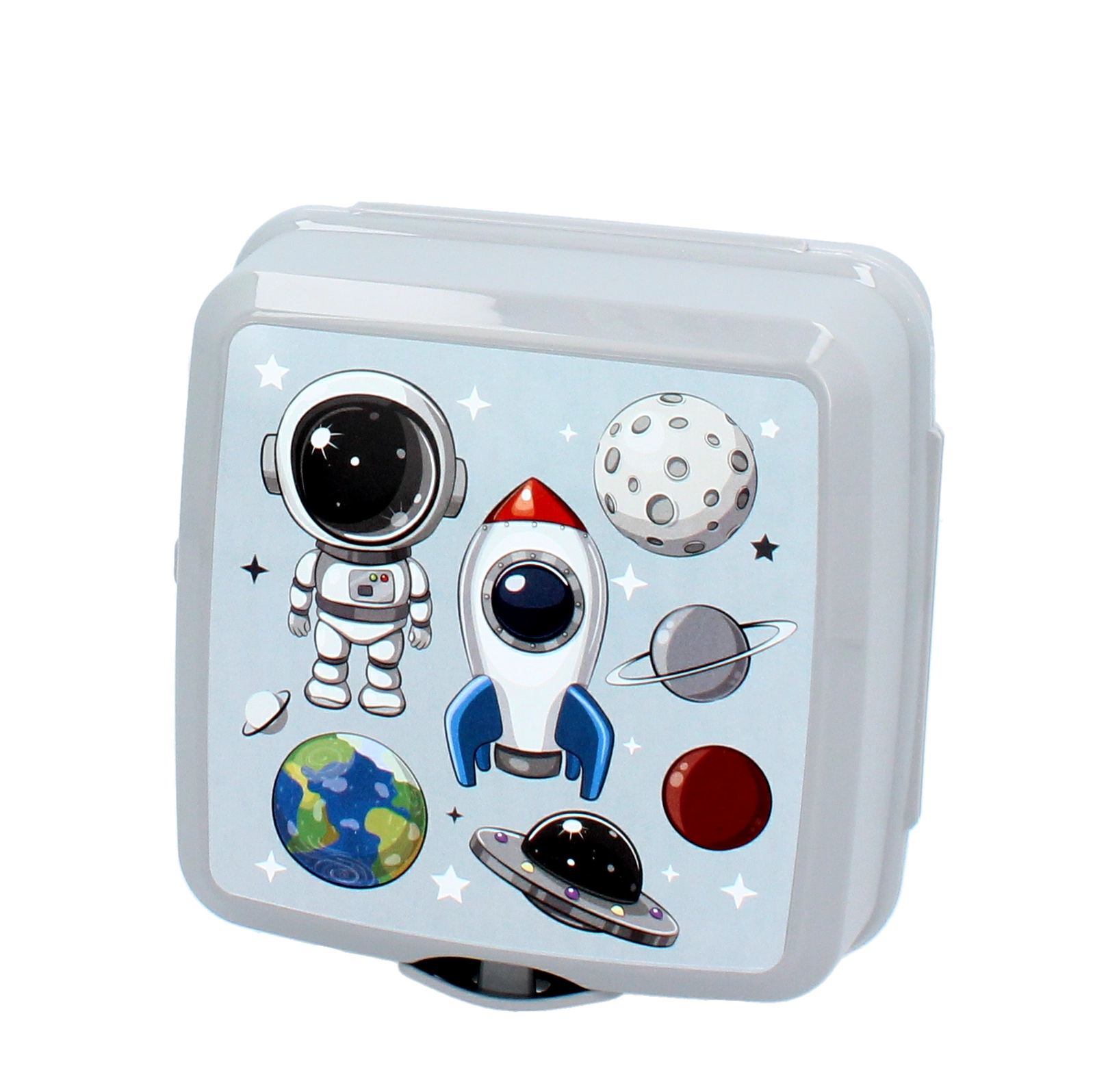 Die Dose schützt Sandwich und Snack zuverlässig dank festem Schnappverschluss. Durch die kompakte Form passt sie leicht in den Rucksack.