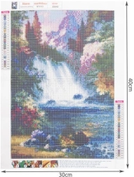 Die detailreiche Wasserfallszene überzeugt mit dem glitzernden Effekt der Steinchen und wird nach der Fertigstellung zum auffälligen Highlight in jedem Interieur.