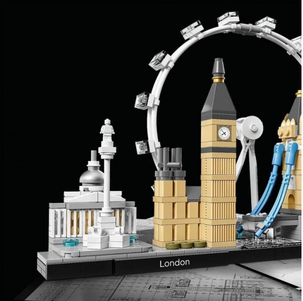 Das Set aus der LEGO Architecture Skyline-Kollektion bildet die berühmtesten Londoner Sehenswürdigkeiten in realistischen Proportionen und Farben nach. Auf dem eleganten Sockel mit der Zierfliese „London“ finden Sie die National Gallery, Nelson’s Column, das London Eye, den Big Ben (Elizabeth Tower) und die Tower Bridge. Transparente Elemente in der Basis stellen den Fluss der Themse dar, sodass das Modell aus jedem Blickwinkel großartig aussieht.