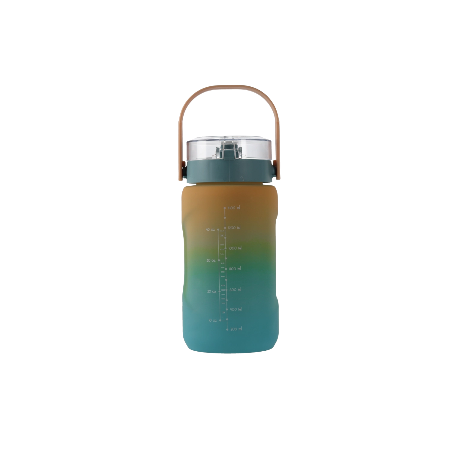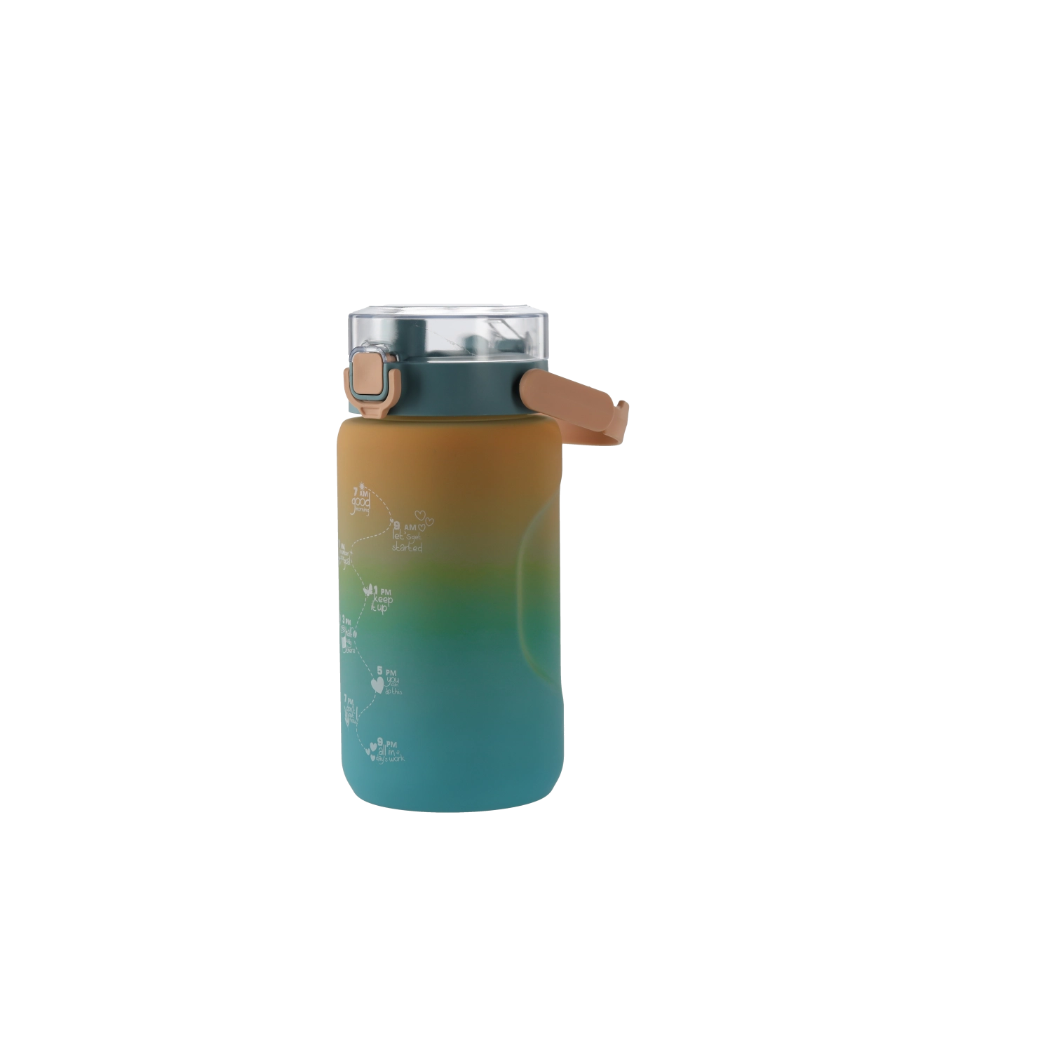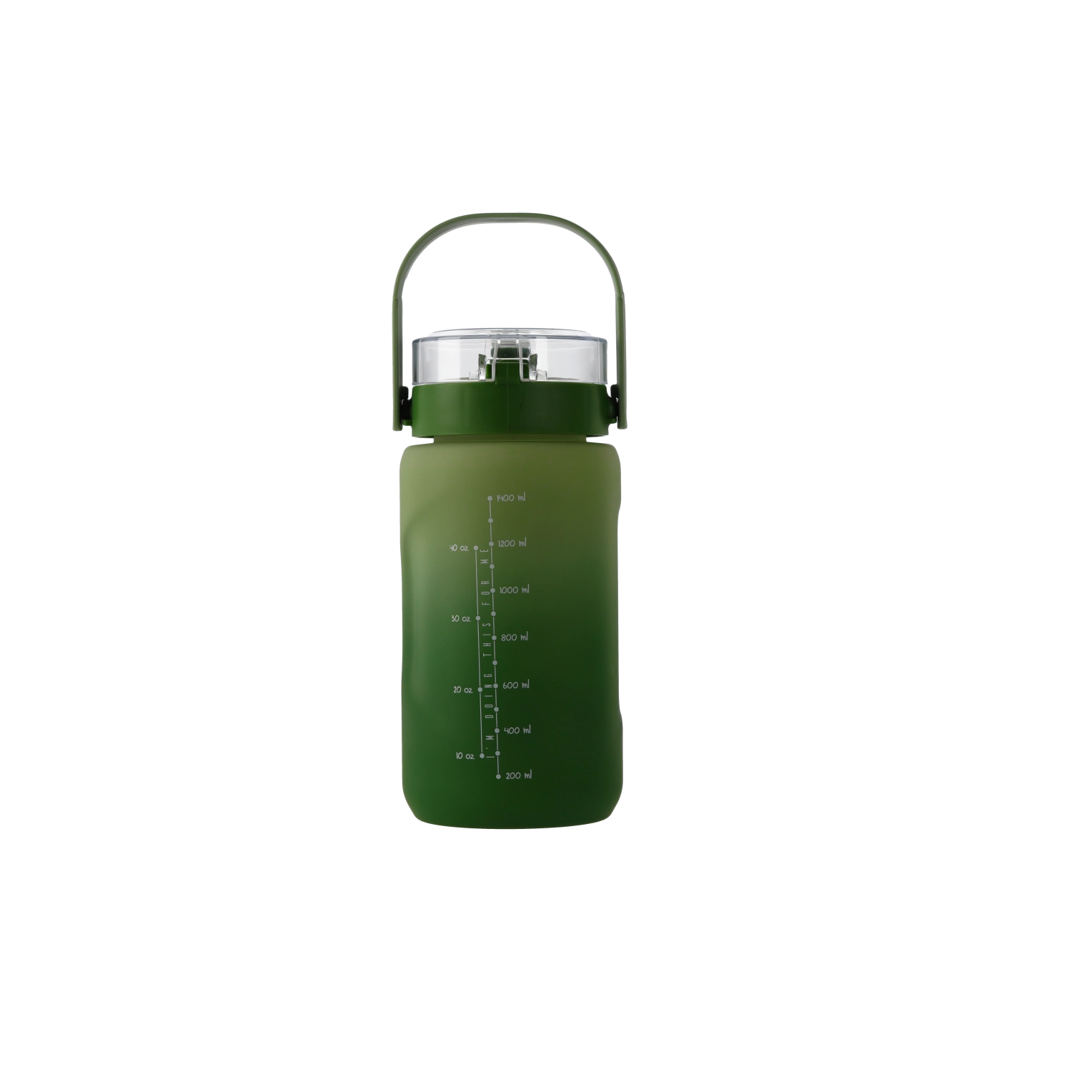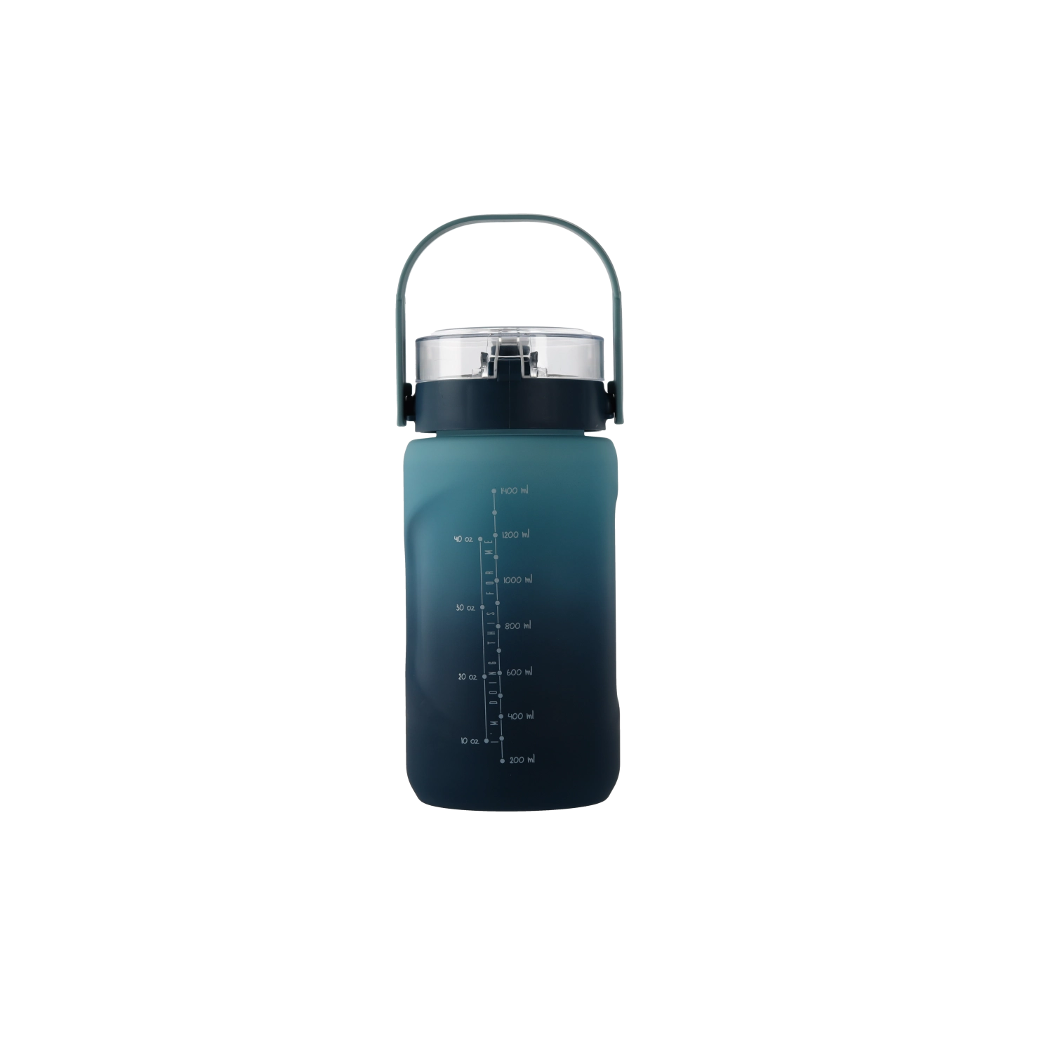 Leichter und robuster Kunststoff mit matter Oberfläche liegt angenehm in der Hand und lässt sich leicht reinigen. Die weite Öffnung ermöglicht komfortables Befüllen mit Wasser, Eis und Obst. Der elegante Ombré-Verlauf von Dunkel- zu Hellgrün verleiht der Flasche einen modernen Look, der im Büro, im Fitnessstudio und auf Ausflügen überzeugt.