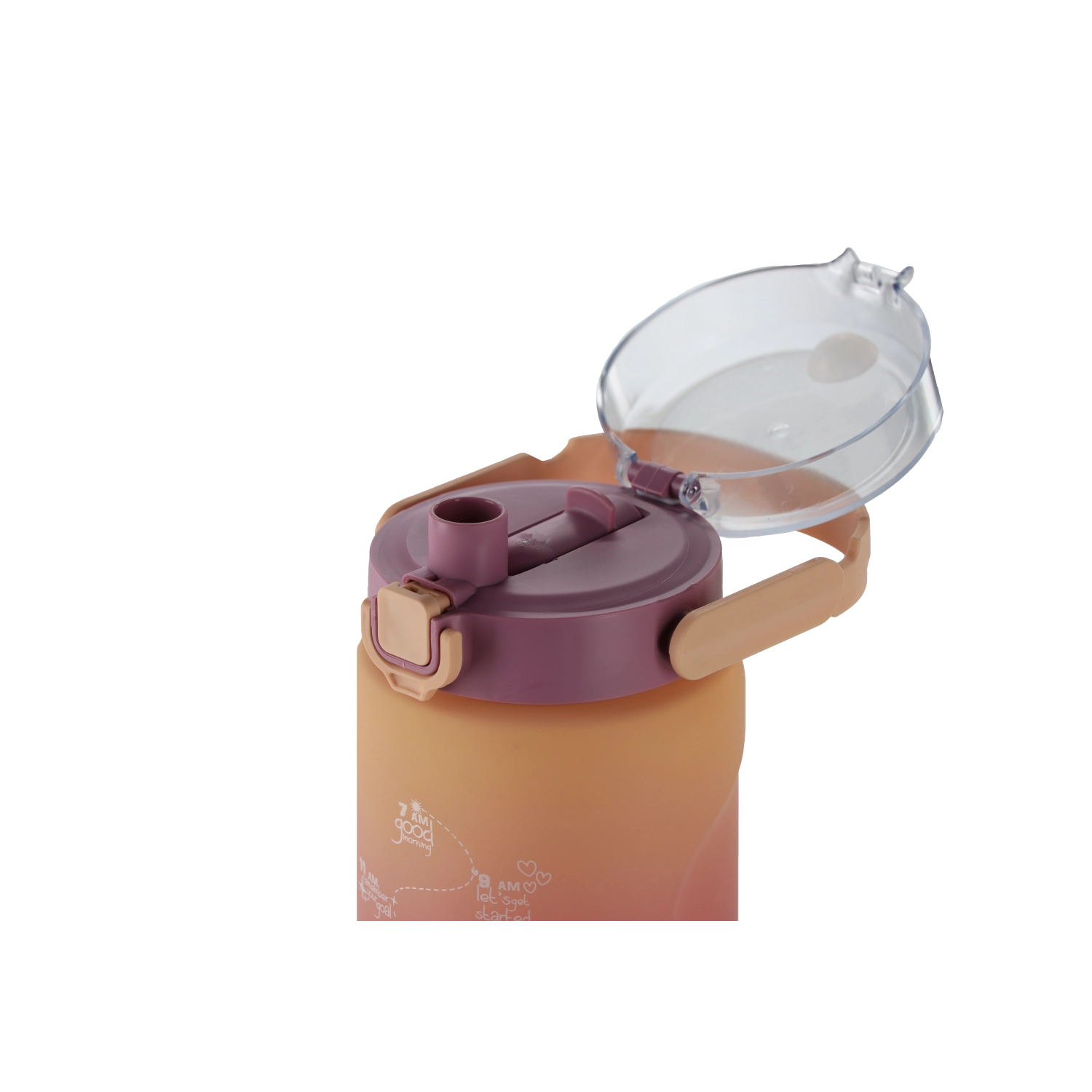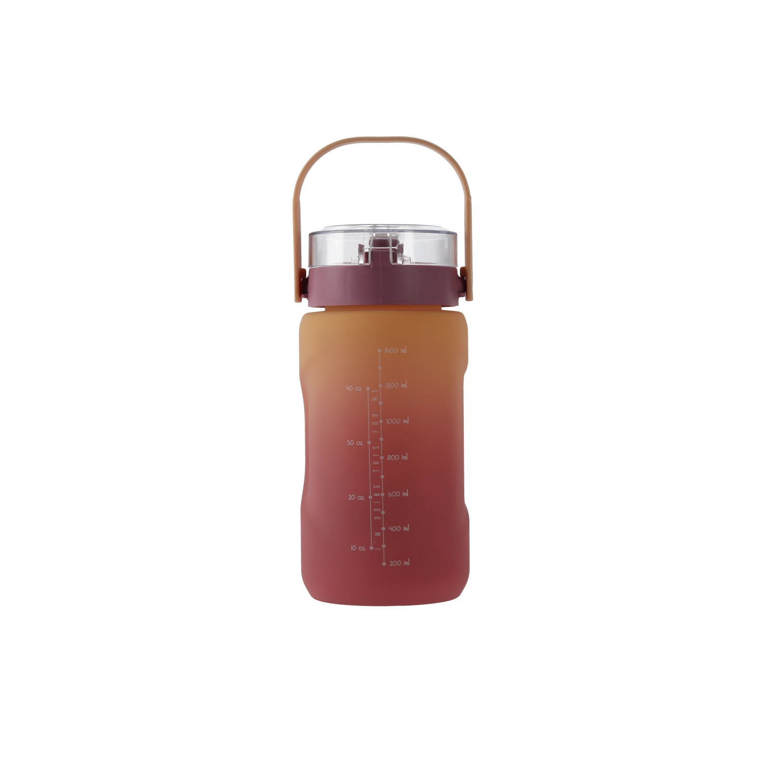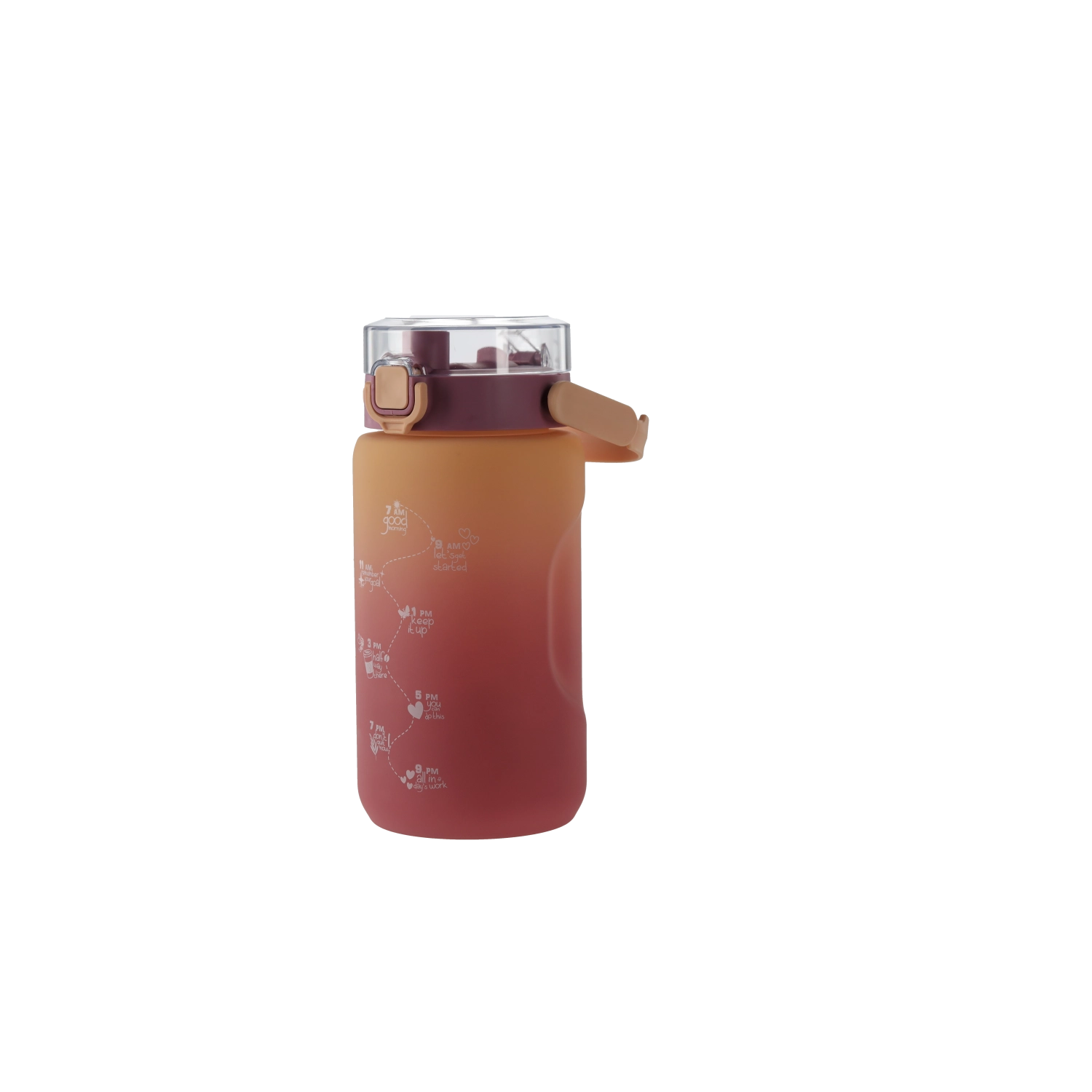 Die großvolumige 1,5-Liter-Wasserflasche ist ideal für ganztägige Hydration ohne ständiges Nachfüllen. Gut ablesbare Milliliter-Skalen und motivierende Zeitmarkierungen helfen dir, regelmäßig zu trinken und einen gesunden Trinkrhythmus beizubehalten. Der sichere Flip-Top-Deckel mit Verriegelung minimiert das Risiko von Flüssigkeitsaustritt im Rucksack oder in der Sporttasche.