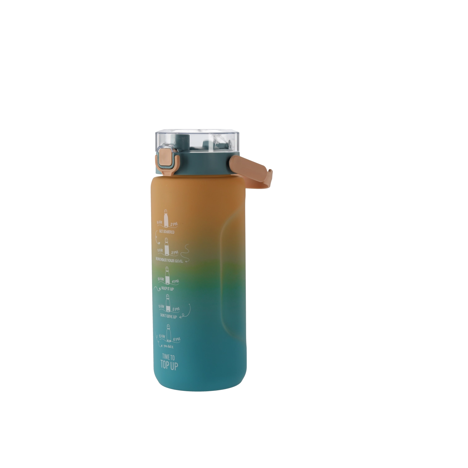 Der Deckel mit Trinköffnung und Sicherungsverschluss schützt vor ungewolltem Öffnen und Auslaufen. Der seitliche Griff/Tragebügel erleichtert den Transport – perfekt für die Arbeit, das Fitnessstudio und Ausflüge. Dank der gekennzeichneten Skalen behalten Sie Ihre Trinkmenge den ganzen Tag über im Blick.