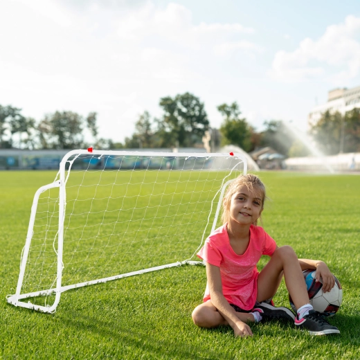 Die Installation dauert nur wenige Minuten – das Tor lässt sich einfach auf- und abbauen, das Netz wird mit stabilen Clips befestigt und im Lieferumfang sind außerdem Heringe zur Verankerung im Boden enthalten. Die Konstruktion ist verformungs- und witterungsbeständig, sodass das Tor bei schlechterem Wetter nicht abgebaut werden muss.