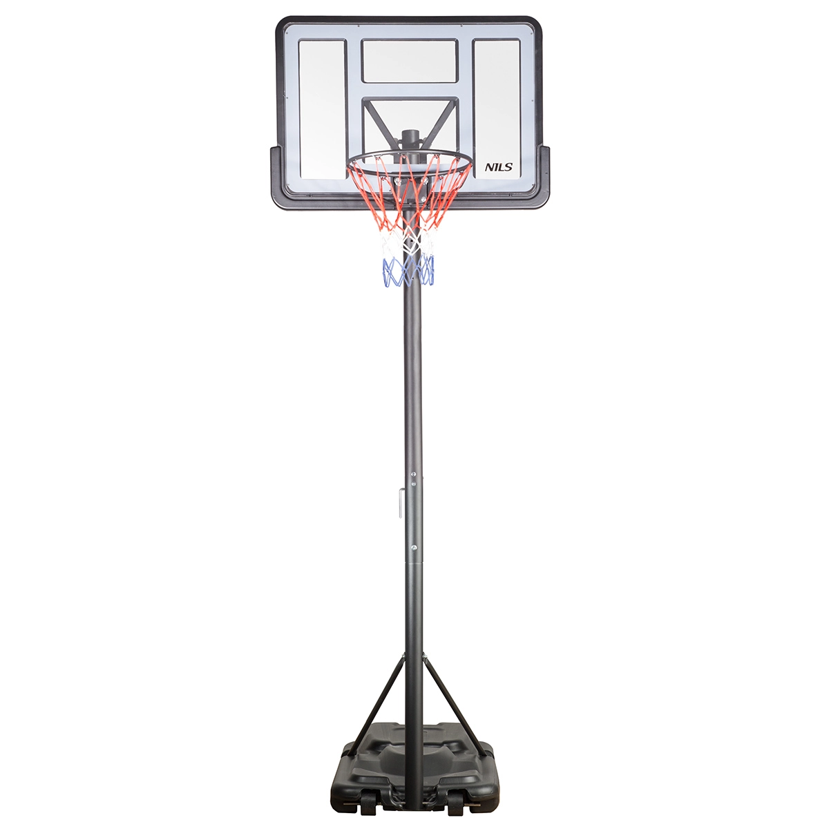 Der mobile Basketballkorb NILS ist die ideale Wahl für den Einsatz zu Hause im Garten oder in der Einfahrt. Dank der stufenlosen Höhenverstellung in einem großen Bereich lässt sich der Korb leicht an Kinder und Erwachsene anpassen. Die transparente PVC-Rückwand in Kombination mit dem Stahlring und dem Nylongeflecht garantiert Langlebigkeit und ein authentisches Spielgefühl.