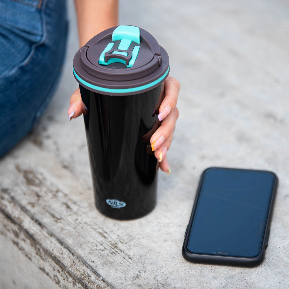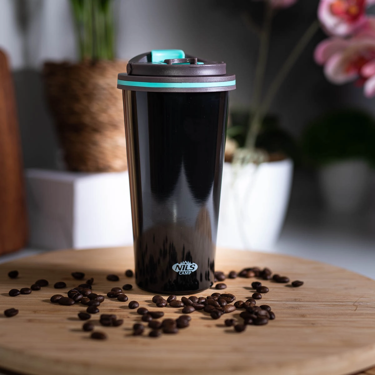 Der praktische Reise-Thermobecher NILS Camp in Schwarz verbindet minimalistisches Design mit zuverlässiger Isolierung. Die doppelwandige Edelstahlkonstruktion hält Ihr Lieblingsgetränk den ganzen Tag über auf der richtigen Temperatur – morgens heißer Tee, nachmittags ein erfrischendes Kaltgetränk. Der Deckel mit komfortablem Flip-Top-Mechanismus lässt sich mit einer Bewegung öffnen, und die Silikondichtung verhindert beim Schließen zuverlässig das Auslaufen.