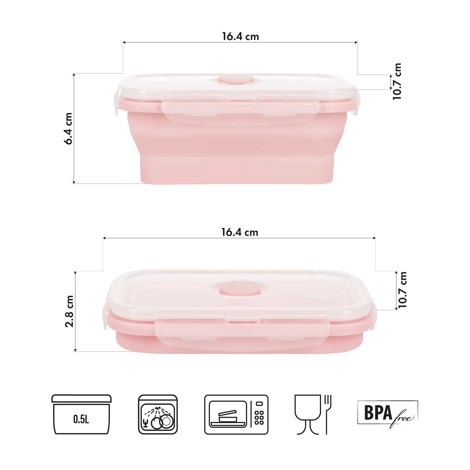Zusammengefaltet ist die Box nur 2,8 cm hoch und nimmt in Tasche und Küche minimalen Platz ein. Ideale Wahl für den täglichen Gebrauch.