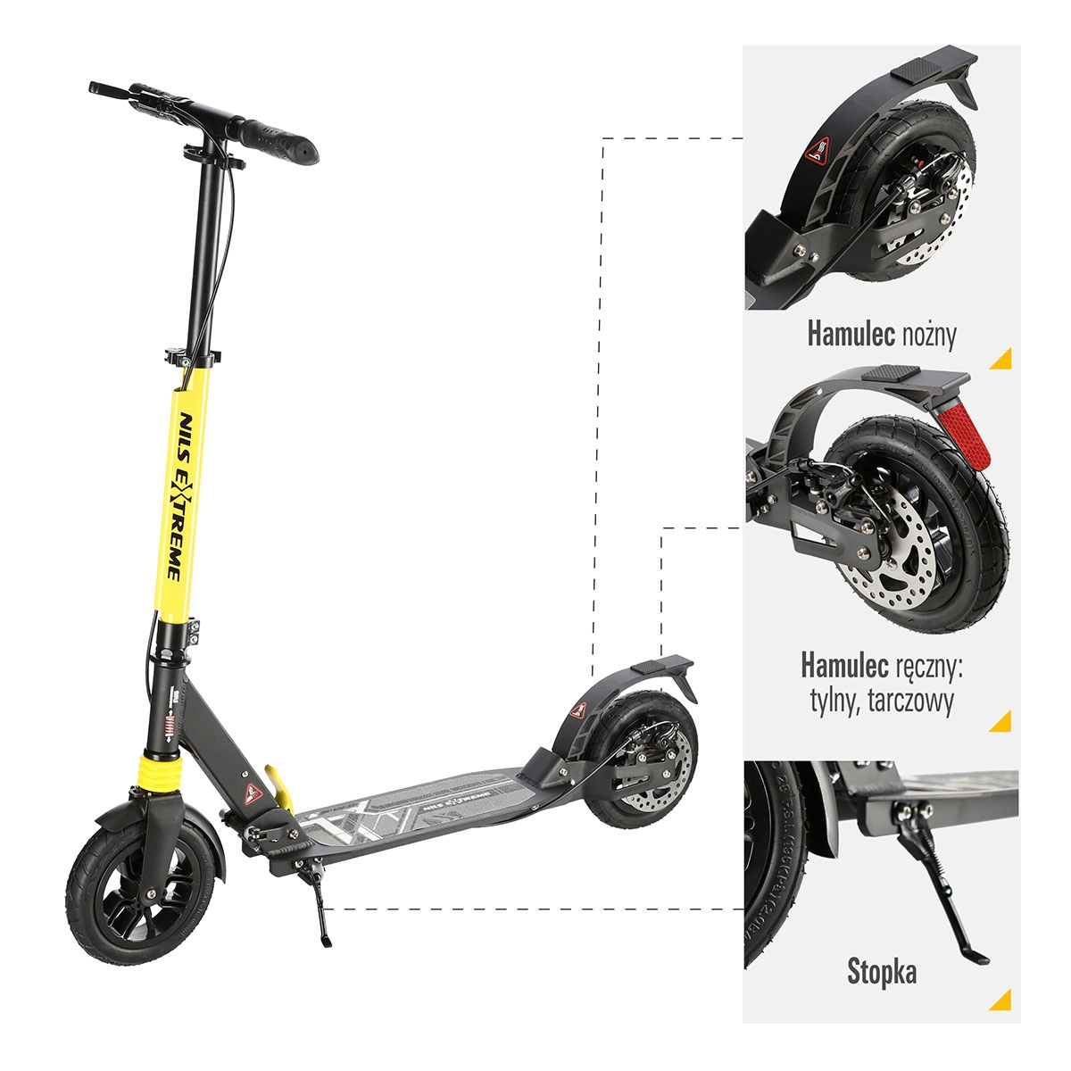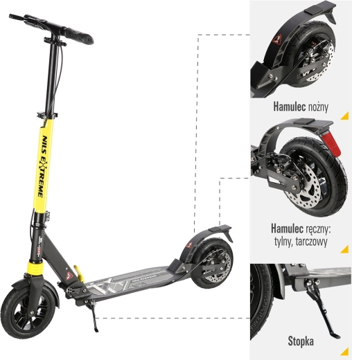 Der NILS Extreme HM208T ist für den täglichen Weg zur Arbeit oder Schule sowie für Freizeitfahrten konzipiert. Dank der Federung beider Räder und der aufpumpbaren Reifen werden Unebenheiten hervorragend gedämpft – die Fahrt auf Asphalt wie auch auf Kopfsteinpflaster ist angenehmer und leiser. Die mechanische Scheibenbremse in Kombination mit dem robusten Pressschutzblech sorgt für ein sicheres und gleichmäßiges Anhalten.