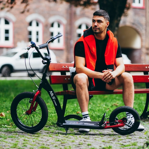 Der NILS Extreme Tretroller mit 16/12 Zoll Rädern ist für aktive Stadtfahrer konzipiert, die Komfort, Sicherheit und Stil verbinden möchten. Die großen Luftreifen wirken als natürliche Stoßdämpfer, überwinden Pflaster, Kanten und Parkwege mühelos und sorgen für hervorragende Bodenhaftung.
