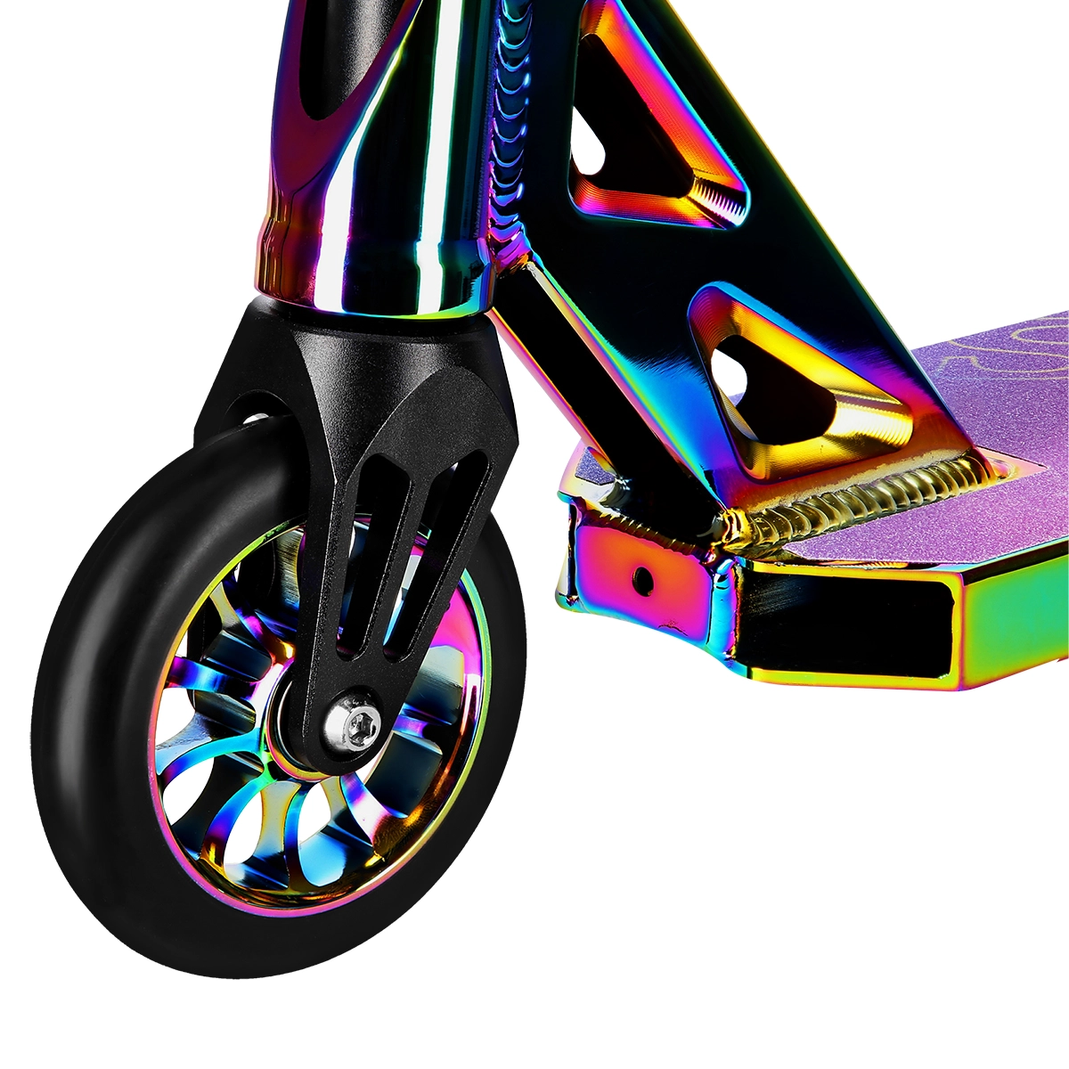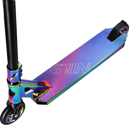 Der Roller NILS Extreme HS014 Pro ist für Skatepark, U-Rampe und das Fahren in der Stadt konzipiert. Das Dreikammer-Aluminium-Deck in Neochrom-Ausführung und der breite, gewindelose Lenker mit Gummigriffen gewährleisten Stabilität, Kontrolle und festen Halt. Dank IHC-System mit Presssitz-Nabe ist die Lenkung präzise und langlebig mit der Möglichkeit der 360°-Lenkerdrehung.
