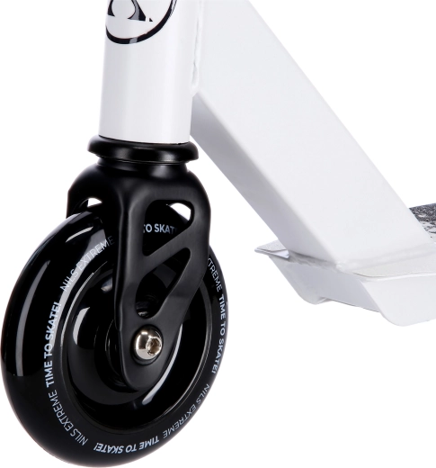 Räder aus PU 100 × 24 mm in Kombination mit ABEC-7-Lagern und einer robusten Metallgabel bieten eine geschmeidige Fahrt, schnelle Beschleunigung und spurtreues Lenkverhalten.