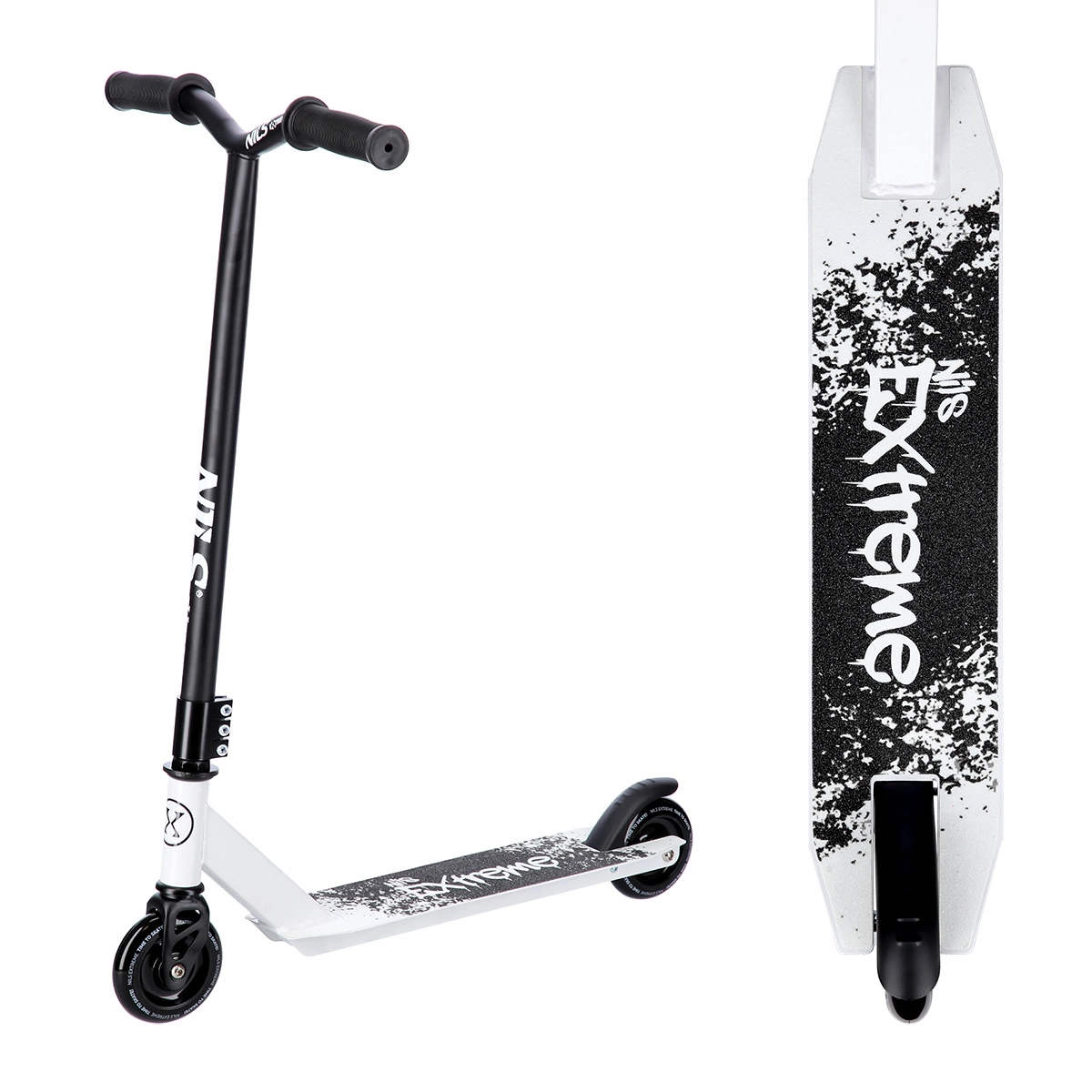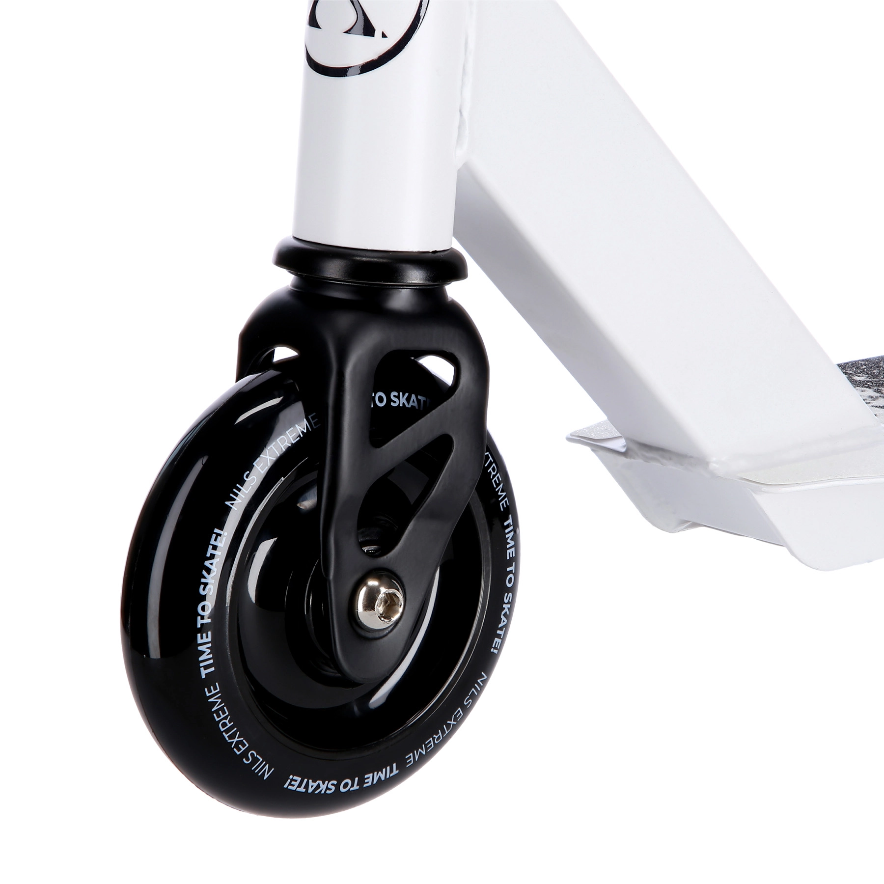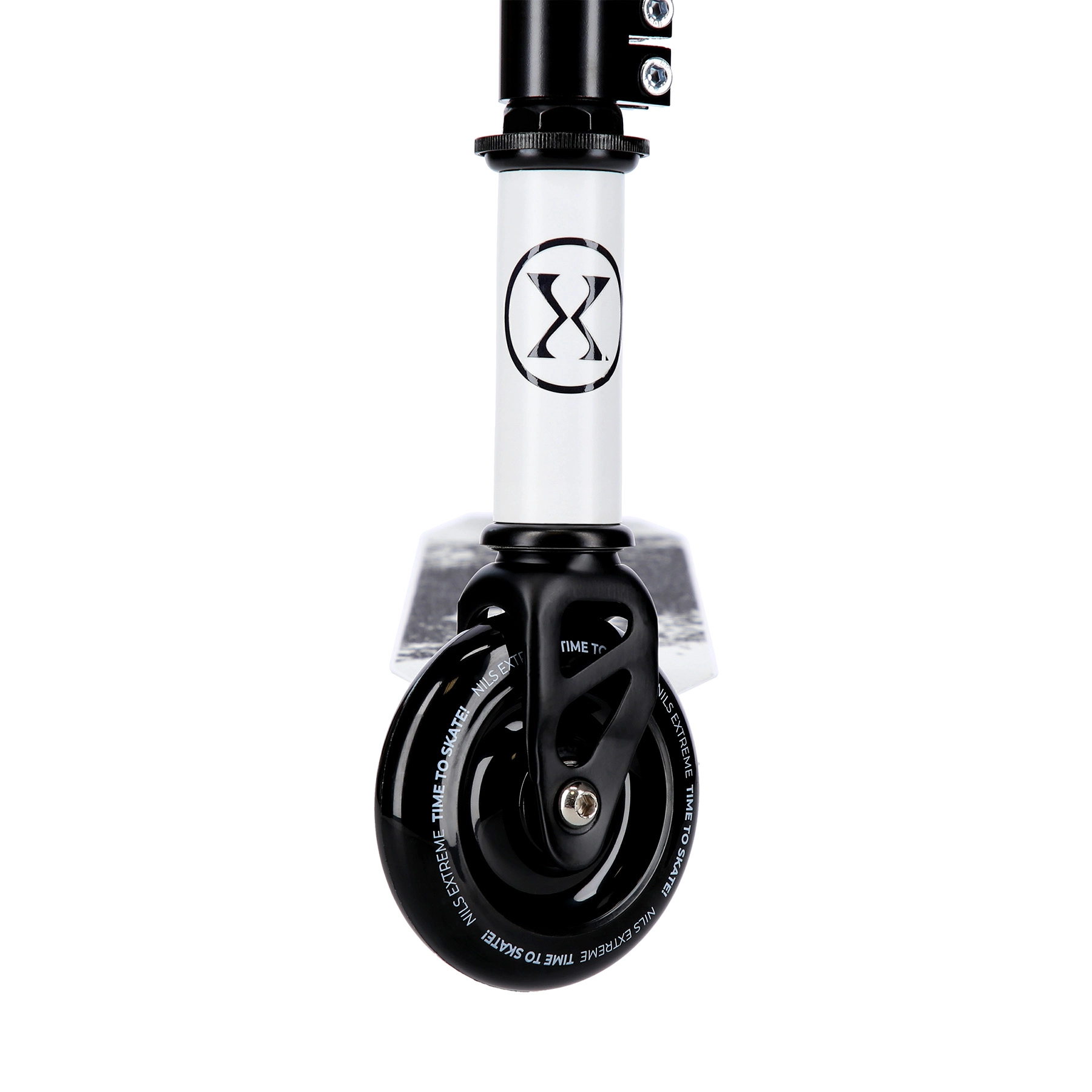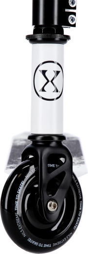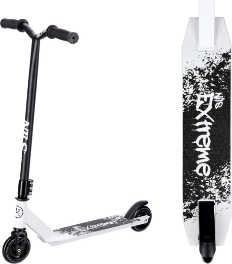Verstärkter Rahmen, T-Lenker und geschweißte Verbindungen erhöhen die Steifigkeit und Haltbarkeit bei Sprüngen, Slides und Rotationen. Die nicht klappbare Ausführung minimiert Spiel und verbessert die Kontrolle.