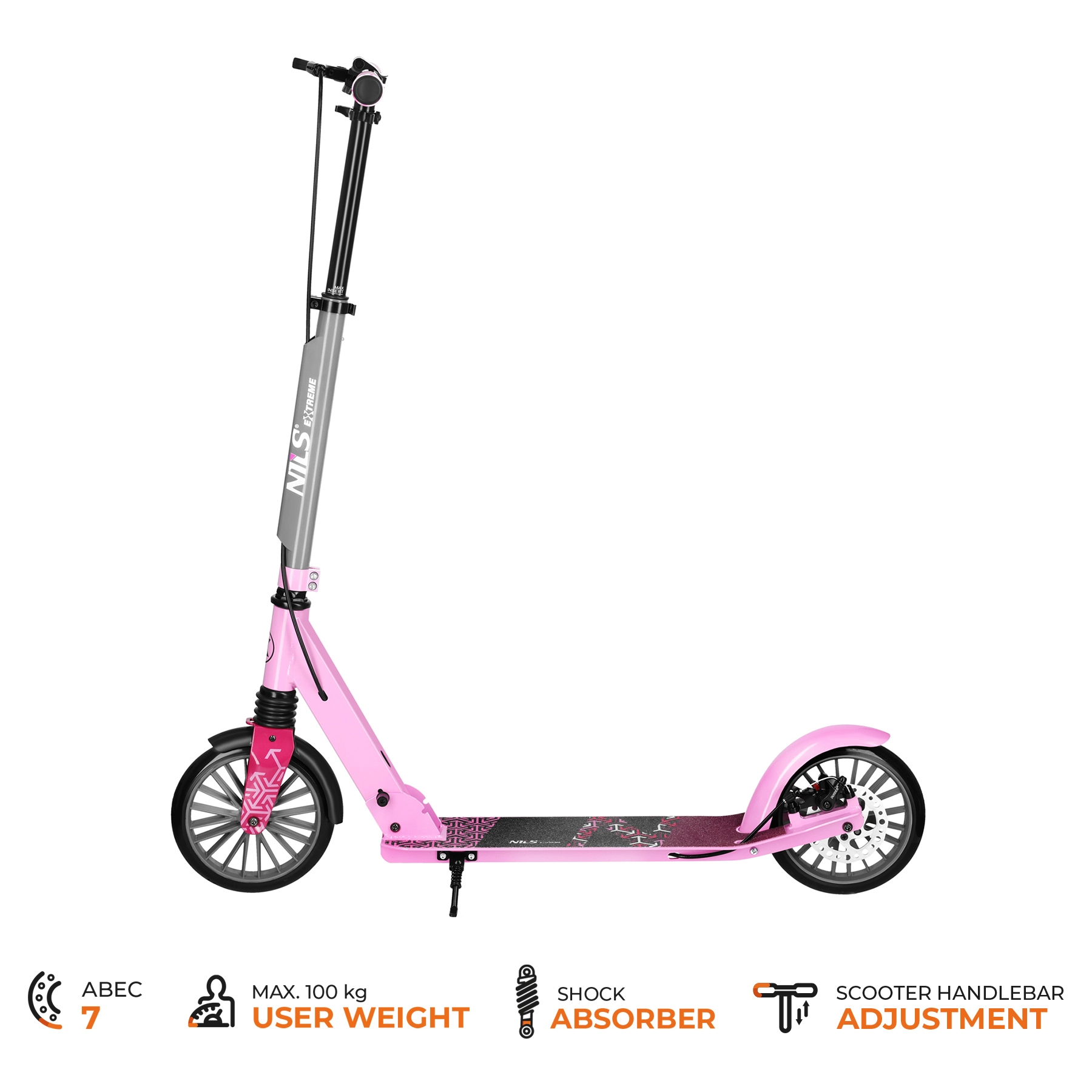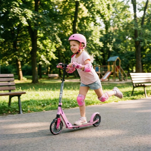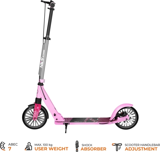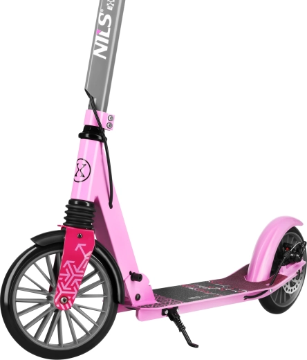 Der Roller NILS Extreme LUMIA ist der ideale Begleiter für den täglichen Weg und Freizeitfahrten. Die stabile Kombination aus Aluminium und Stahl hält das Gewicht niedrig, während die vordere Federung Unebenheiten dämpft. Rutschfestes Deck und weiche Griffe erhöhen Sicherheit und Komfort.