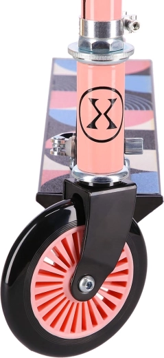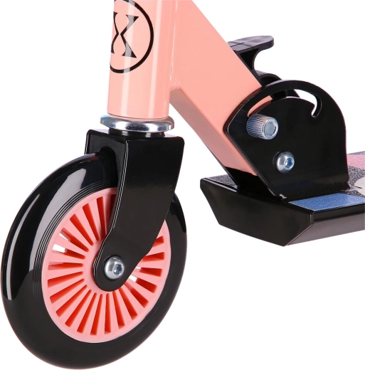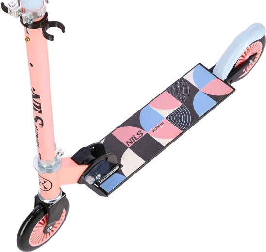 Der NILS Extreme Roller in Rosa‑Blau verbindet eine stabile Stahlkonstruktion mit einem leichten Aluminium-Deck für eine stabile und komfortable Fahrt auf Asphalt und befestigten Gehwegen. Polyurethan-Räder mit 125 mm Durchmesser und ABEC-5-Lagern gewährleisten sanftes Abrollen und Sicherheit beim täglichen Pendeln.