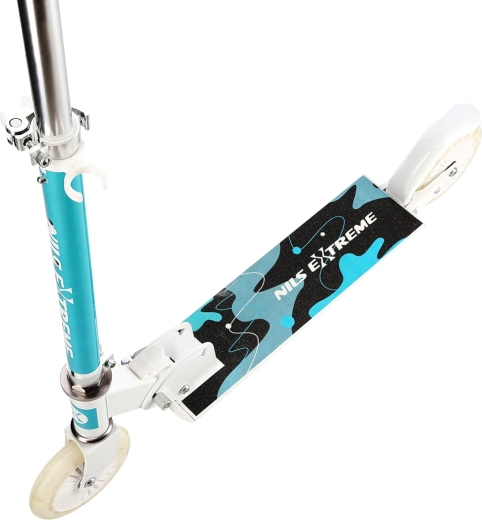 Der Roller NILS Extreme HD505 ist die ideale Wahl für Kinder, die sicher und mit Spaß zur Schule, auf den Spielplatz oder zu Ausflügen fahren möchten. Dank der robusten Konstruktion aus Aluminium und Stahl ist er leicht und dennoch widerstandsfähig, und das Klappsystem ermöglicht das Verstauen im Auto, Zug oder ÖPNV in wenigen Augenblicken.