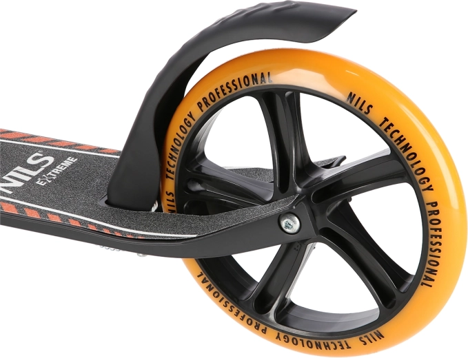 Genießen Sie eine sanfte und sichere Fahrt mit dem Tretroller NILS Extreme HM0107. Der leichte, dennoch stabile Aluminiumrahmen lässt sich schnell zusammenklappen, sodass Sie den Roller bequem in den ÖPNV mitnehmen oder im Kofferraum verstauen können. Große Polyurethanräder mit 200 mm Durchmesser und ABEC‑7‑Lagern sorgen für schnellen und komfortablen Stadtverkehr.