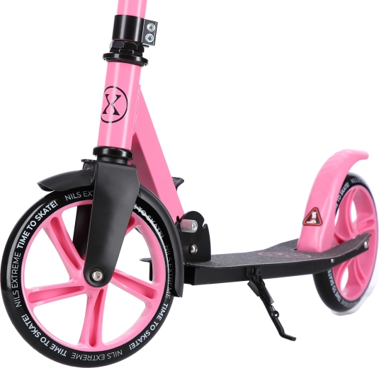 Suchen Sie einen zuverlässigen und komfortablen City-Roller? Der NILS EXTREME HM2009 in Rosa kombiniert eine leichte Stahl-Alu-Konstruktion mit einem Klappmechanismus, sodass Sie ihn problemlos in den ÖPNV mitnehmen oder im Kofferraum verstauen können. Dank höhenverstellbarem Lenker und Gummigriffen genießen sowohl kleinere Fahrer als auch Erwachsene eine angenehme Fahrt.