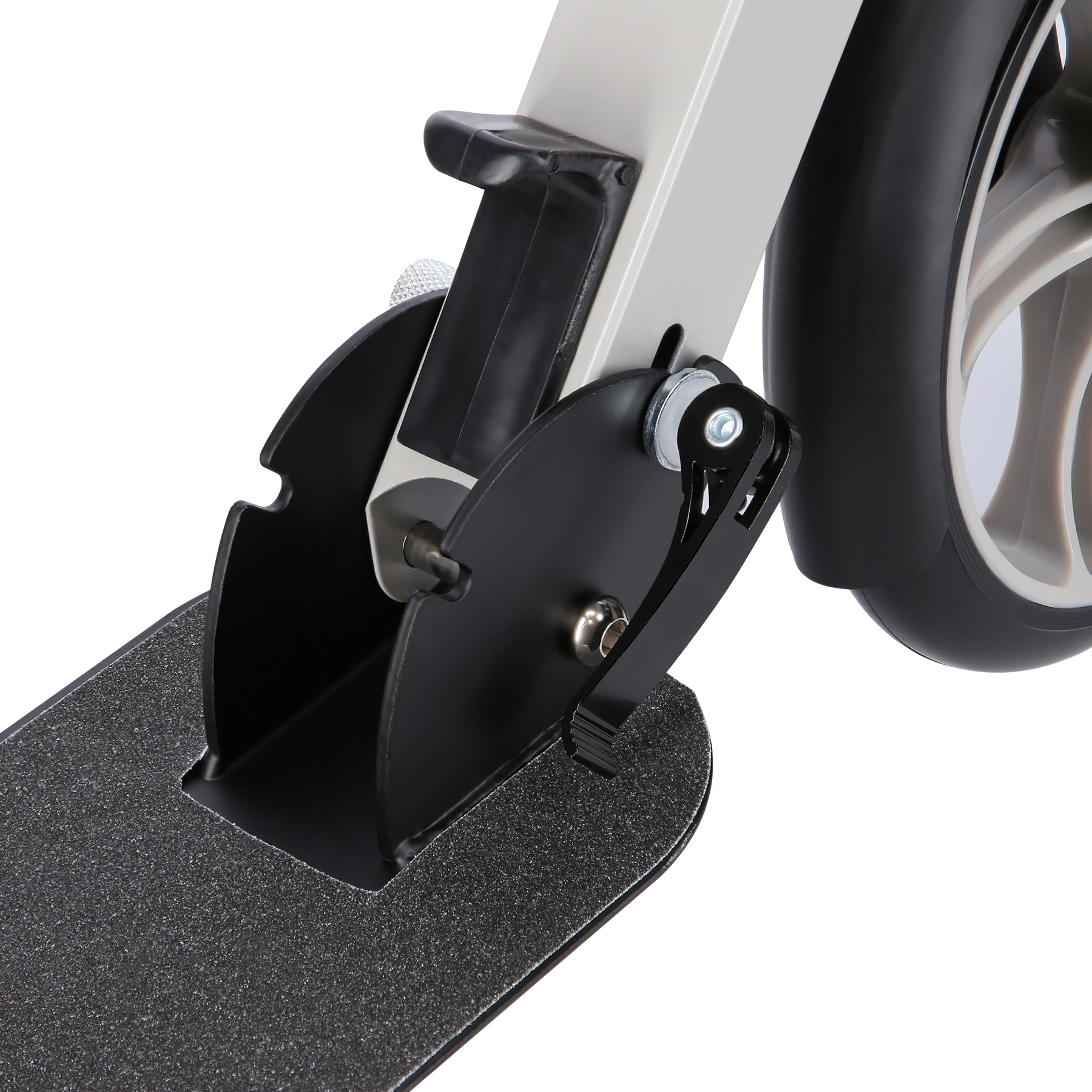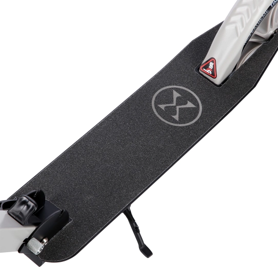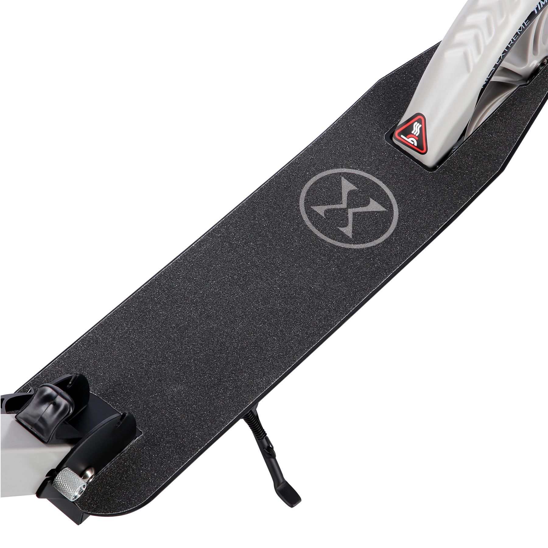 Das rutschfeste Grip-Tape auf dem Deck erhöht die Stabilität, der hintere Kotflügel dient als effektive Fußtrittbremse für sicheres Anhalten.