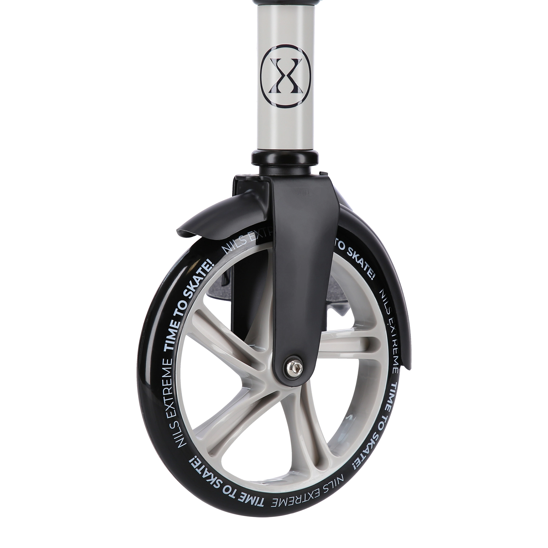 Polyurethan-Räder mit 200 mm Durchmesser und ABEC-7-Lagerung sorgen auf urbanen Oberflächen für eine schnelle, sanfte und leise Fahrt.