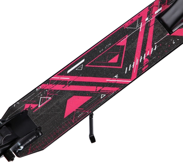 Große PU-Räder 200 mm (82A) in Kombination mit hochwertigen ABEC-7-Lagern bieten Stabilität, leisen Lauf sowie eine flotte und sichere Fahrt auf Gehwegen und Radwegen. Die hintere Trittbremse am Schutzblech ermöglicht ein sicheres Anhalten, während der klappbare Ständer das Parken überall erleichtert. Der Roller hat eine Tragfähigkeit von 100 kg und ein großzügiges Deck für komfortablen Stand.