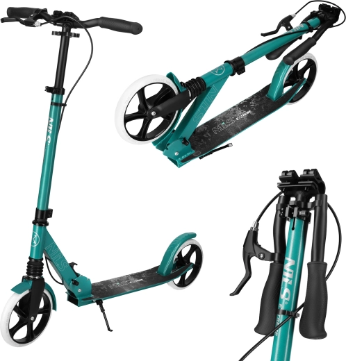 Für Sicherheit sorgt ein doppeltes Bremssystem – die Handbremse für präzise Dosierung und die hintere Trittbremse für schnelles Abbremsen. Die rutschfeste TPR-Trittfläche (54 × 12 cm) bietet einen sicheren Stand. Die höhenverstellbaren Lenker (92/97/102 cm) lassen sich leicht an die Körpergröße anpassen, der Faltmechanismus erleichtert Transport und Aufbewahrung, und der integrierte Ständer ermöglicht bequemes Abstellen überall.