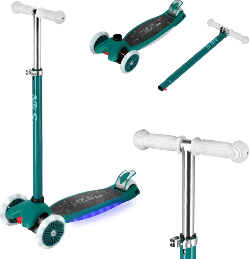 Dank der zwei Vorderräder und des intuitiven Neigelenksystems ist dieser Roller ideal für Einsteiger und fortgeschrittene Kinder. Breites, rutschfestes Deck mit LED-Effekt erhöht die Sichtbarkeit und Attraktivität, während der verstellbare T-Lenker (78/84/90 cm) dafür sorgt, dass der Roller mit dem Kind mitwächst.