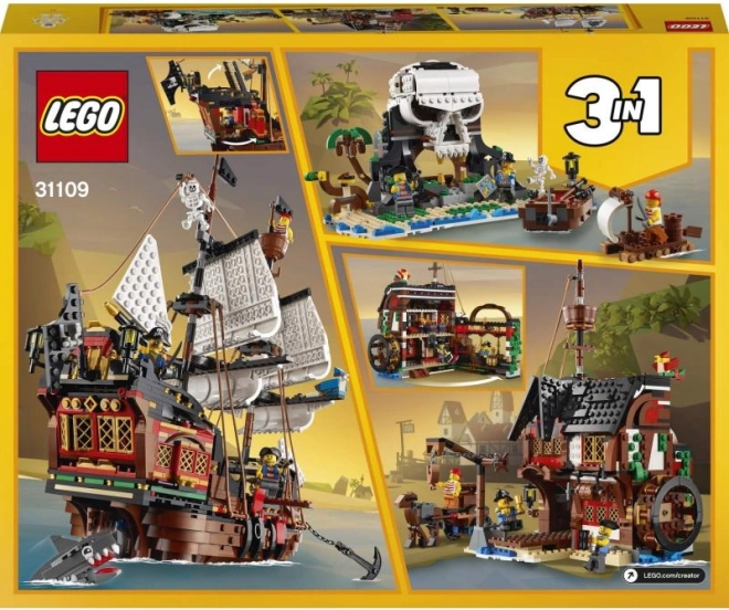 LEGO Creator 3-in-1 Piratenschiff bietet Kindern die Möglichkeit, drei verschiedene Spielzeuge zu bauen. Ihr könnt ein Piratenschiff konstruieren, es in eine Piratentaverne verwandeln oder in die gruselige Schädelinsel. Außerdem können Kinder ihrer Fantasie freien Lauf lassen und etwas völlig Neues erschaffen!