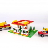 Bauen Sie eine Tankstelle mit Details, die Kinder lieben – Zapfsäulen, Überdachungen und Deko. Eine Spielszenerie voller Tank- und Service-Stopps.