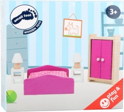 Dieses detailreich gestaltete Puppenhaus-Schlafzimmer-Set bietet hochwertige Holzverarbeitung, eine sanfte Farbabstimmung in Rosa und Weiß sowie durchdachte Maße für bequemes Spiel. Enthalten sind ein Bett mit Bettdecke, ein Kleiderschrank, Nachttische und Lampen – alles im Maßstab für Puppen bis 12 cm. Robustes Massivholz sorgt für Langlebigkeit und sicheres Spielvergnügen für Kinder ab 3 Jahren.