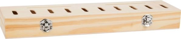 Das Produkt ist aus 100% FSC-zertifiziertem Holz gefertigt, was seine ökologische Verträglichkeit sicherstellt. Das Spielzeug enthält drei Vorlagebretter und 30 Chips, die bequem auf Reisen verpackt werden können, was es zu einem praktischen Begleiter im Urlaub macht.