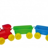 Dieser bunte Plastikzug mit zwei Waggons in 60 cm Länge ist das perfekte Spielzeug für Kleinkinder, ideal für das Spielen im Sand oder zuhause.