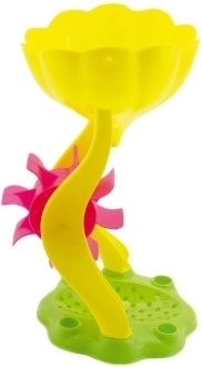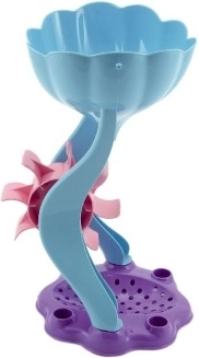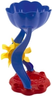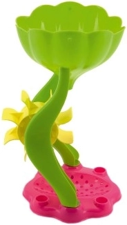Füllen Sie Sand oder Wasser in den oberen Trichter und beobachten Sie, wie sich die bunten Räder drehen. Perfekt für Strand, Sandkasten und Garten.