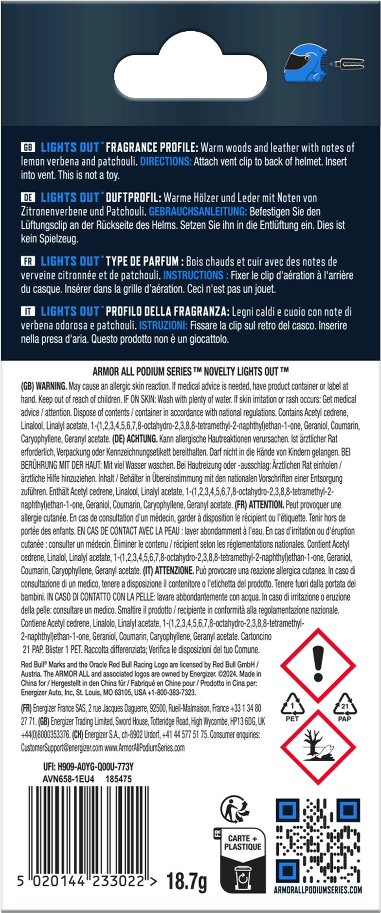 Beleben Sie den Innenraum Ihres Fahrzeugs mit einem exklusiven 3D-Duft für das Lüftungsgitter, der nicht nur durch das Helm-Design, sondern auch durch sein Premium-Aroma überzeugt. Der Duft kombiniert warme holzige und ledrige Noten mit dem Funken der Zitronenverbene und der Tiefe von Patchouli – ideal für Fahrer, die Stil und Frische schätzen.