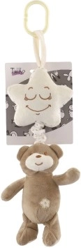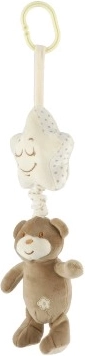Dieses niedliche Hängespielzeug verbindet einen Bären mit einem cremefarbenen Stern, in dessen Innerem sich die Spieluhr befindet. Nach dem Aufziehen am Bären erklingt ein angenehmes Wiegenlied, das Ihr Baby beruhigt und sanft beim Einschlafen unterstützt – zuhause und unterwegs.