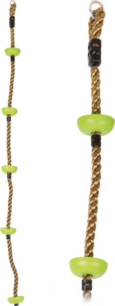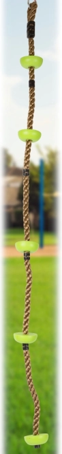 Das Kletterseil Small Foot Sky verwandelt jeden Garten oder Spielbereich in ein kleines Abenteuer. Grüne Kunststoffscheiben dienen als sichere Tritt- und Greifpunkte für Hände und Füße, das robuste Nylonseil fühlt sich angenehm an und ist zugleich strapazierfähig. Der praktische Metallring ermöglicht das einfache Aufhängen an Baum, Spielturm oder Reckstange.