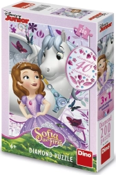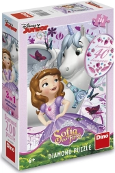 Ein zauberhaftes Puzzle mit Prinzessin Sofia und einem Einhorn bringt Kindern stundenlangen Spaß und Freude. Es enthält 200 Teile und ermöglicht das Zusammensetzen eines wunderschönen Bildes, das nach dem Verkleben mit funkelnden Steinchen verziert werden kann. Hergestellt in Tschechien aus robustem, gesundheitlich unbedenklichem Karton. Ideales Geschenk für Kinder ab 6 Jahren, fördert Feinmotorik, Geduld und Fantasie. 200 Teile, funkelnde Steinchen, Kleber enthalten, hergestellt in Tschechien.