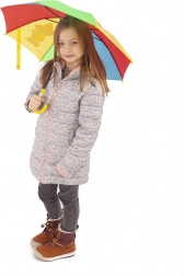 Mit einem Knopfdruck bereit für den Regen. Ideal für kleine Kinderhände und den schnellen Einsatz bei einem Schauer.