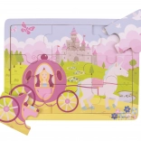 Erleben Sie die magische Welt mit dem Holzpuzzle Prinzessin mit Kutsche von Bigjigs Toys. Kinder tauchen gerne in das Zusammenfügen ein und genießen das Entstehen der magischen Szene. Jedes Teil ist sorgfältig gestaltet, um sicher und einfach zu greifen.