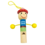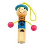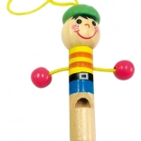 Fröhliche Holzflöte in Form eines Männchens ist ein hervorragendes Werkzeug zur Förderung des kindlichen Gehörs und ein unterhaltsames Accessoire, das gleichzeitig als Signal- oder Fußballflöte dient.