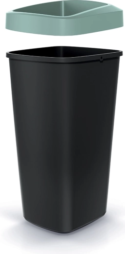 Elegante und funktionale Lösung für die Sortierung und Sammlung von Abfällen. Dieser 25-Liter-Eimer passt dank seiner kompakten Abmessungen mühelos in Küchen, Büros und kleinere Räume. Der hellgrüne Rahmen betont nicht nur das moderne Design, sondern fixiert auch zuverlässig den Müllbeutel, sodass die Ränder verdeckt bleiben und die Umgebung sauber ist.