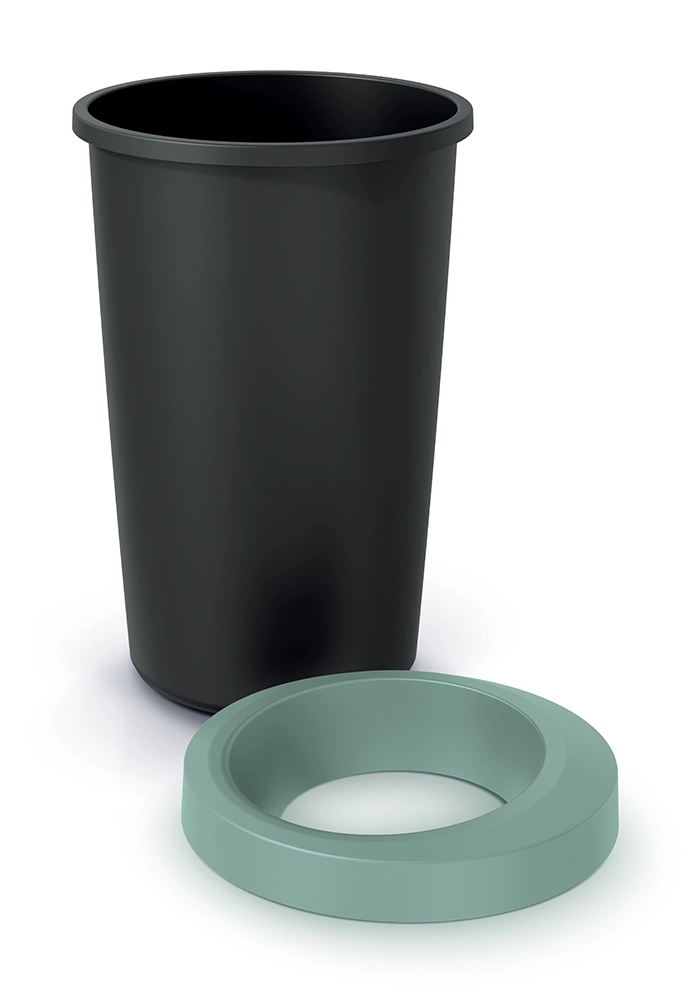 Der elegante Eimer mit offenem oberen Rand überzeugt durch modernes Design und kompakte Maße von 39,4 × 39,4 × 65 cm und passt damit hervorragend in kleine wie große Räume. Die matte Oberfläche wirkt sauber und dezent, während der hellgrüne Ring einen frischen Akzent setzt und das Einwerfen erleichtert.